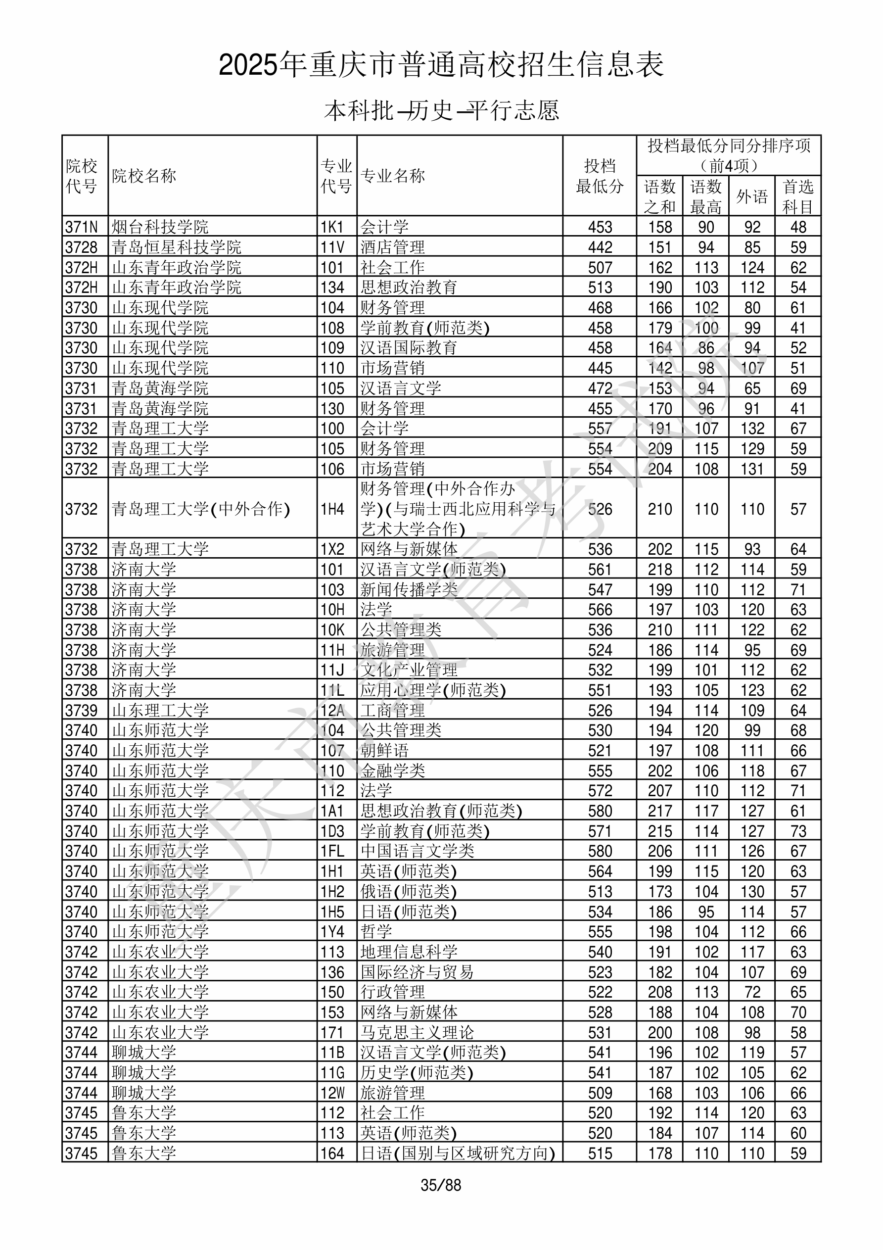 2025年重庆高考普通类本科批 山东师范大学 的 公共管理类 专业录取分数溯源信息