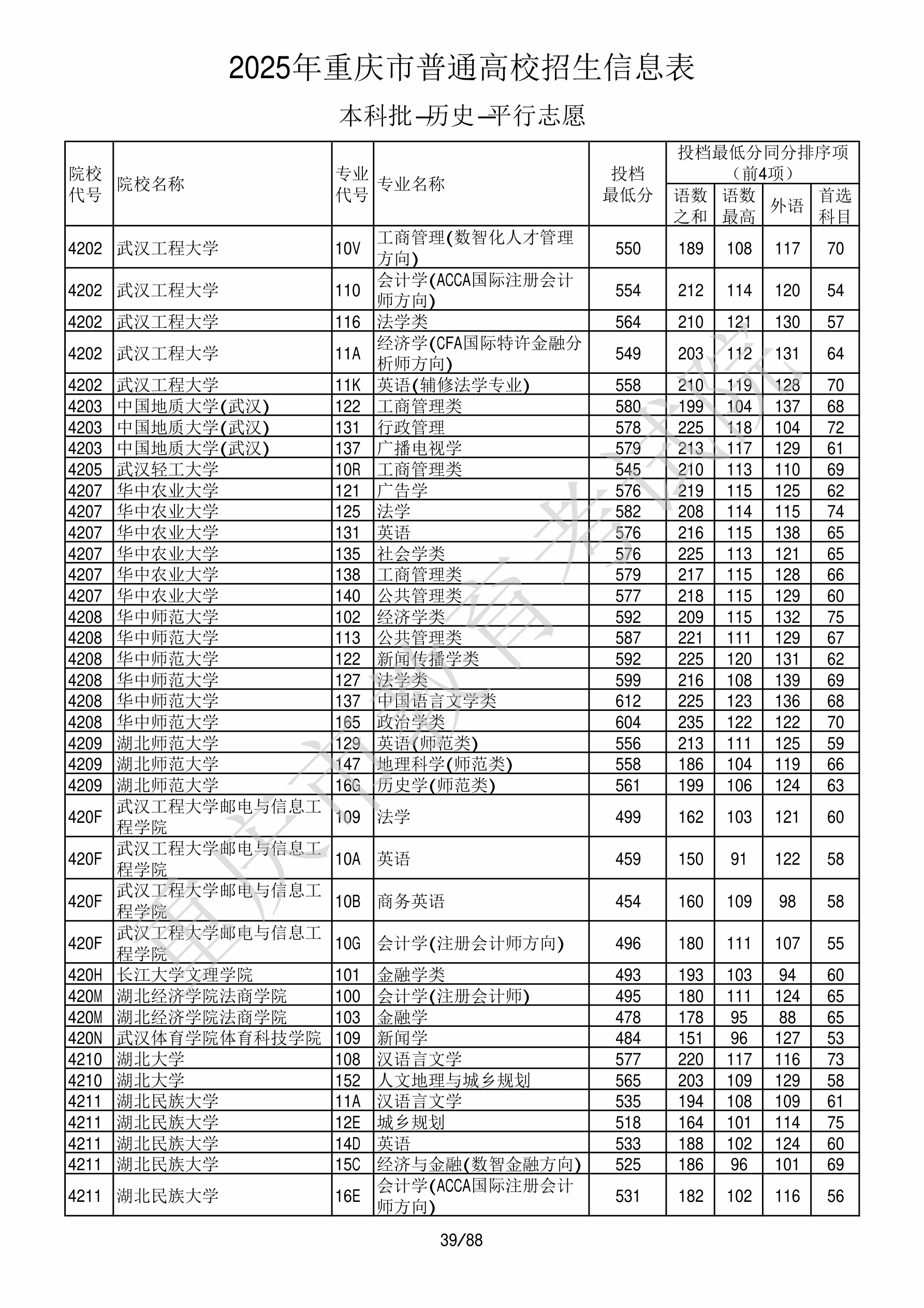 2025年重庆高考普通类本科批 中国地质大学(武汉) 的 行政管理 专业录取分数溯源信息