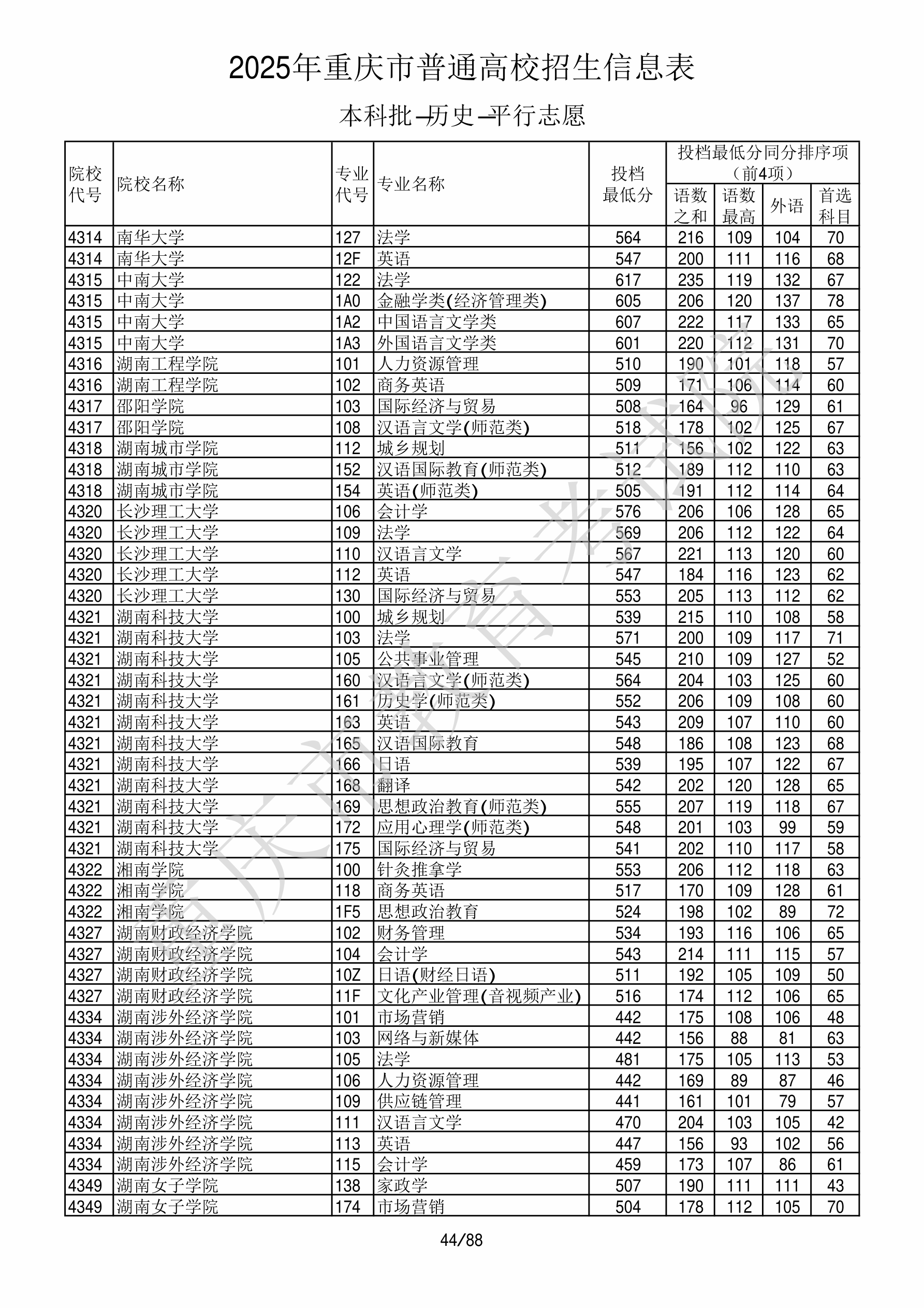 2025年重庆高考普通类本科批 湘南学院 的 思想政治教育 专业录取分数溯源信息