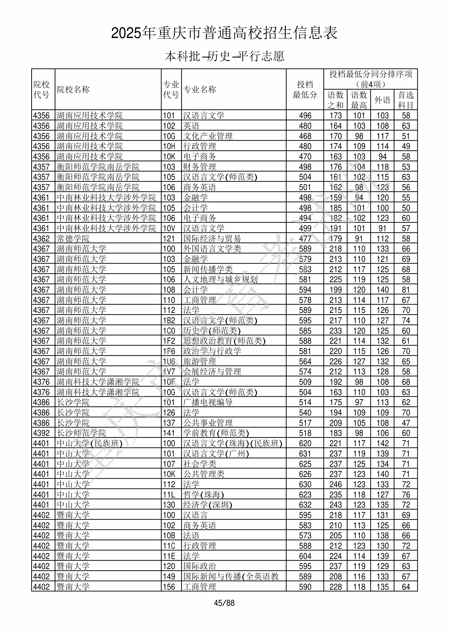2025年重庆高考普通类本科批 长沙师范学院 的 学前教育 专业录取分数溯源信息