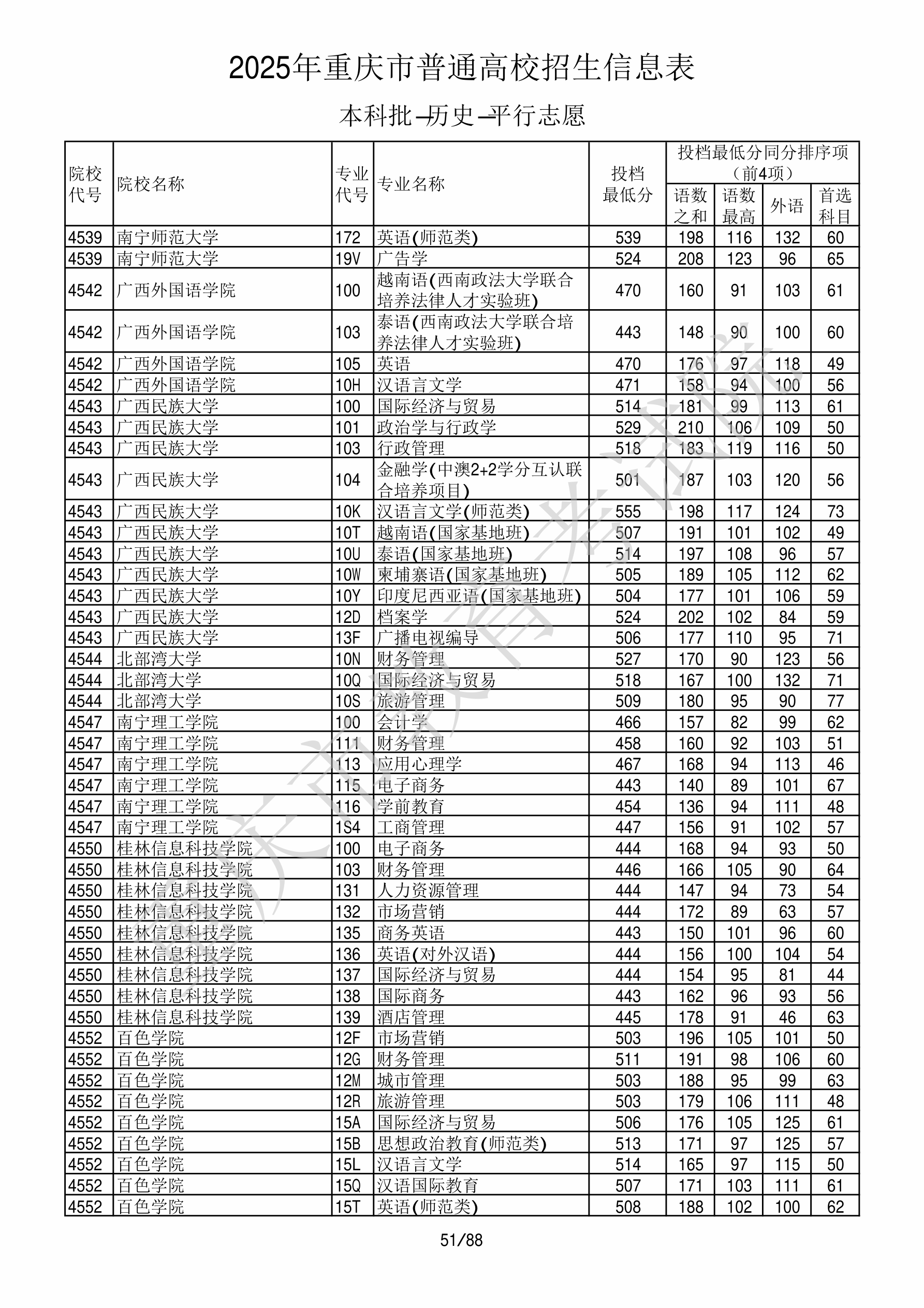 2025年重庆高考普通类本科批 广西民族大学 的 金融学 专业录取分数溯源信息