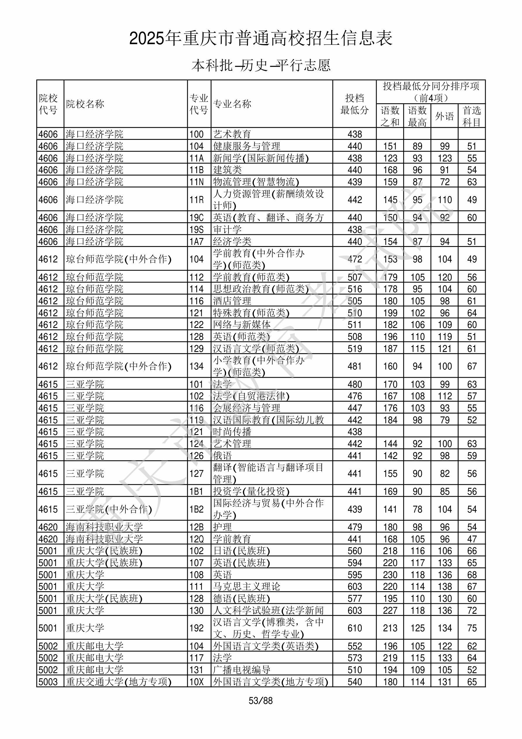 | 5002 | 重庆邮电大学 | 131 | 广播电视编导 | 510 | 15318 | 本科 | 历史 ,再选: 不限 | 1 |