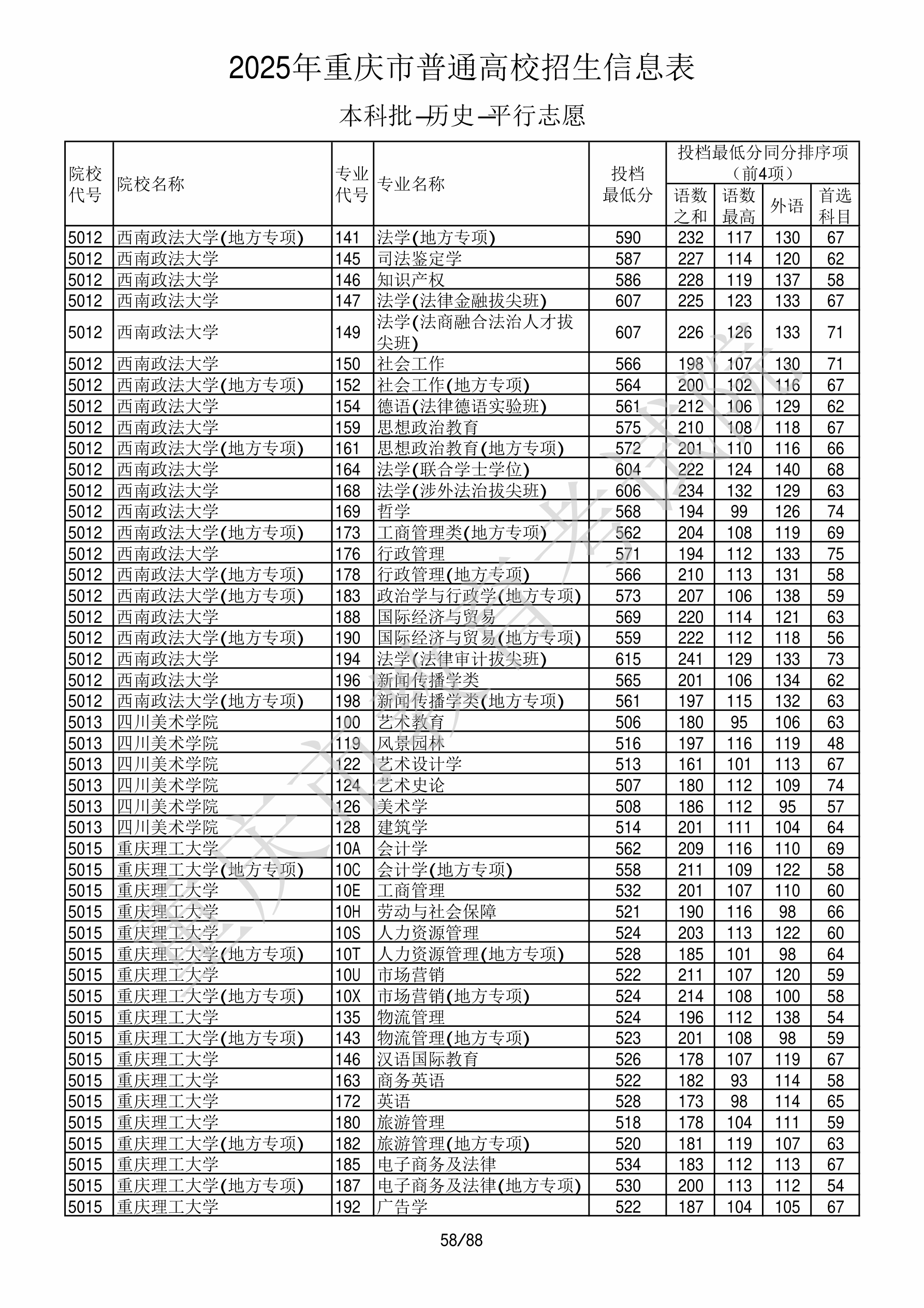2025年重庆高考普通类本科批 西南政法大学 的 工商管理类 专业录取分数溯源信息