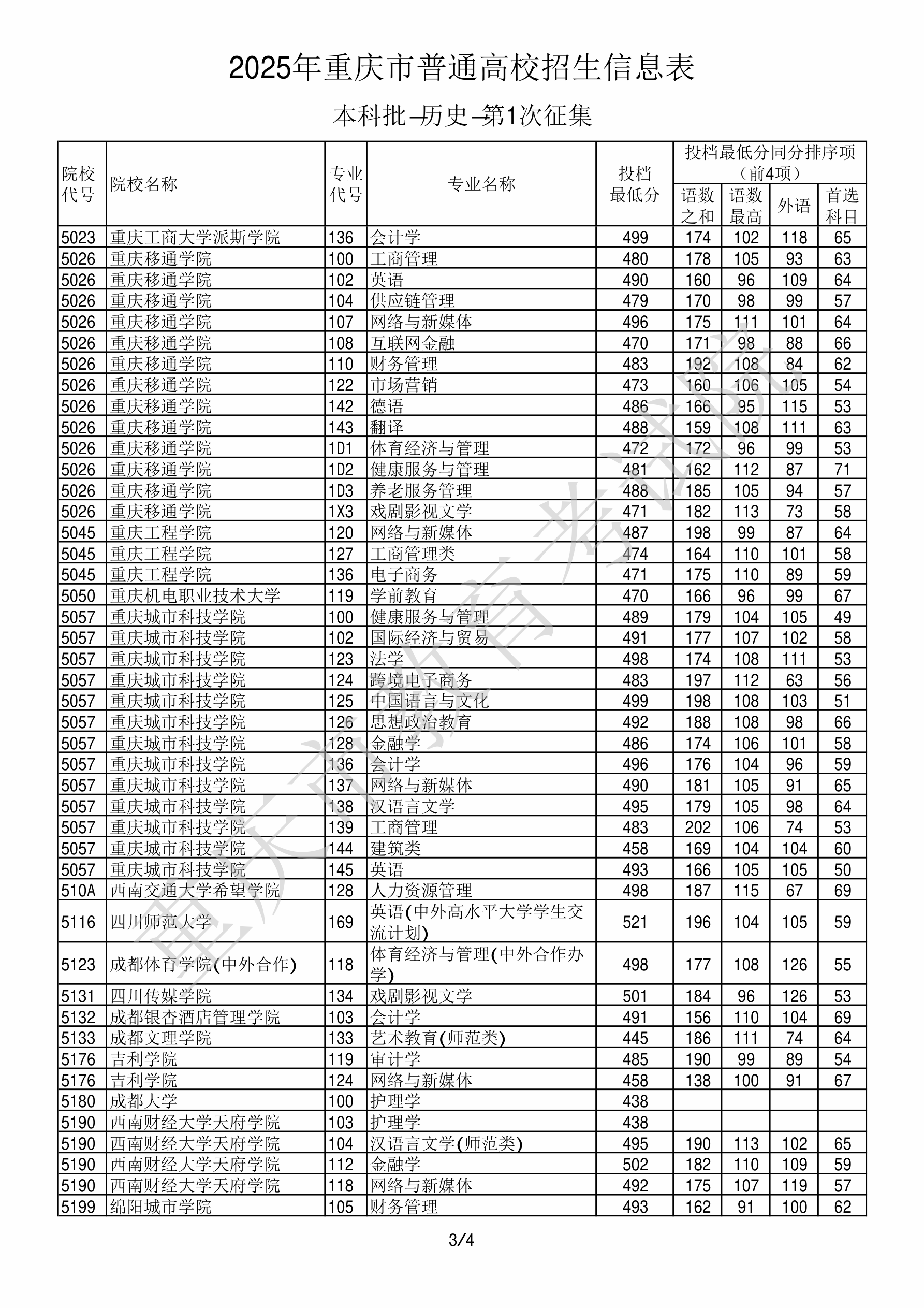 2025年重庆高考普通类本科批 成都体育学院 的 体育经济与管理 专业录取分数溯源信息