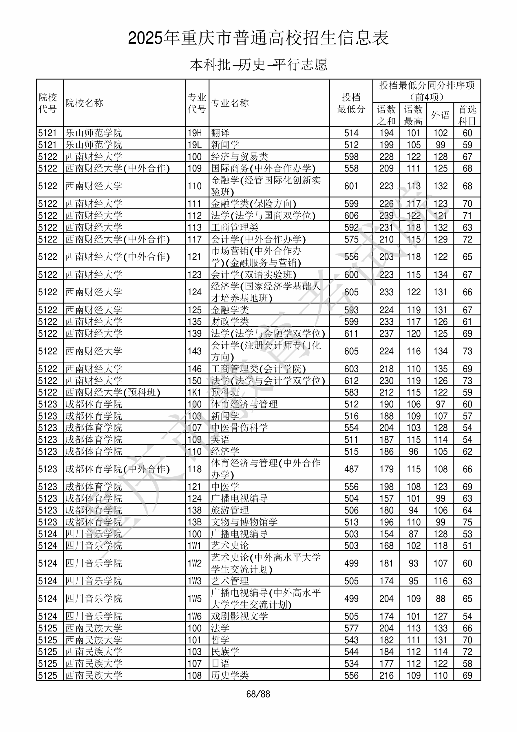| 5124 | 四川音乐学院 | 1W2 | 艺术史论(中外高水平大学学生交流计划) | 499 | 17973 | 本科 | 历史 ,再选: 不限 | 1 |