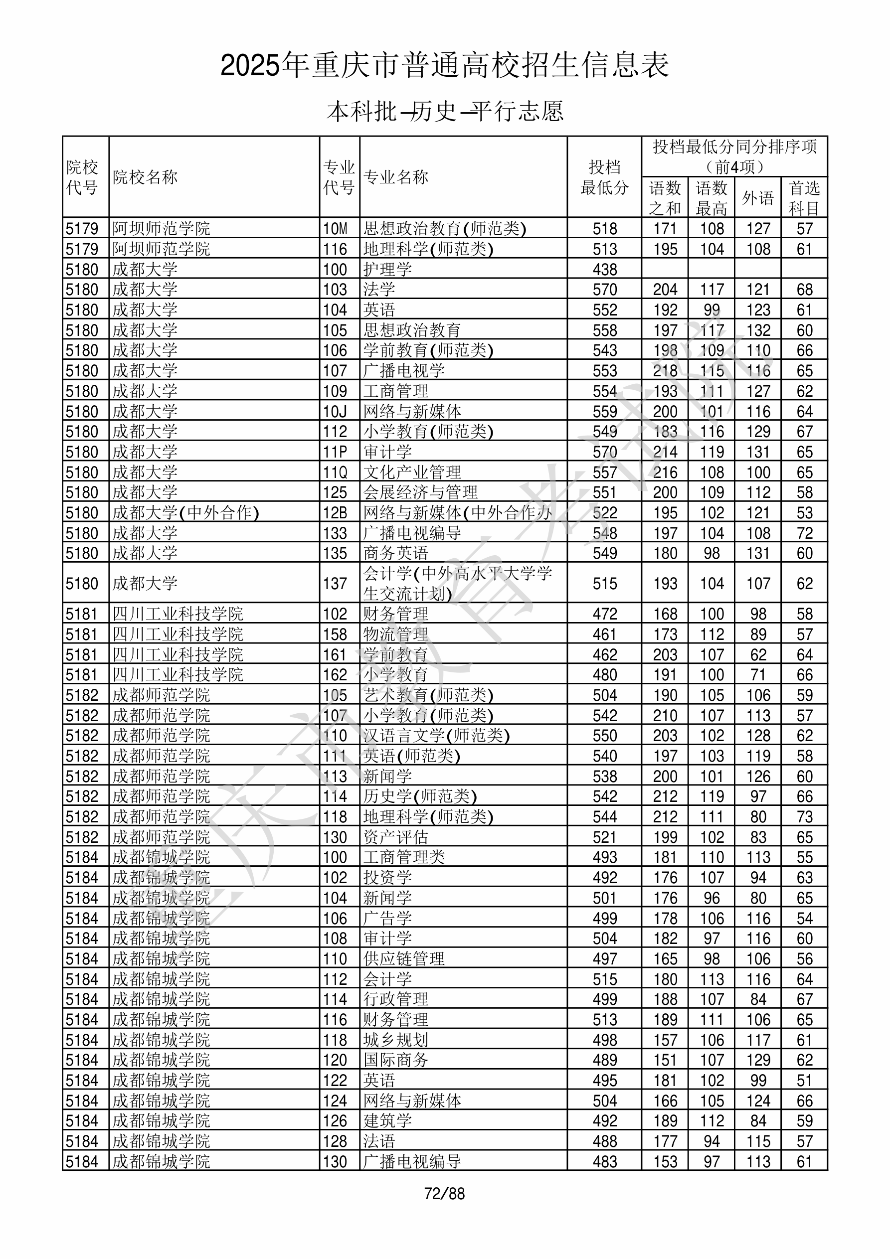 2025年重庆高考普通类本科批 成都大学 的 护理学 专业录取分数溯源信息