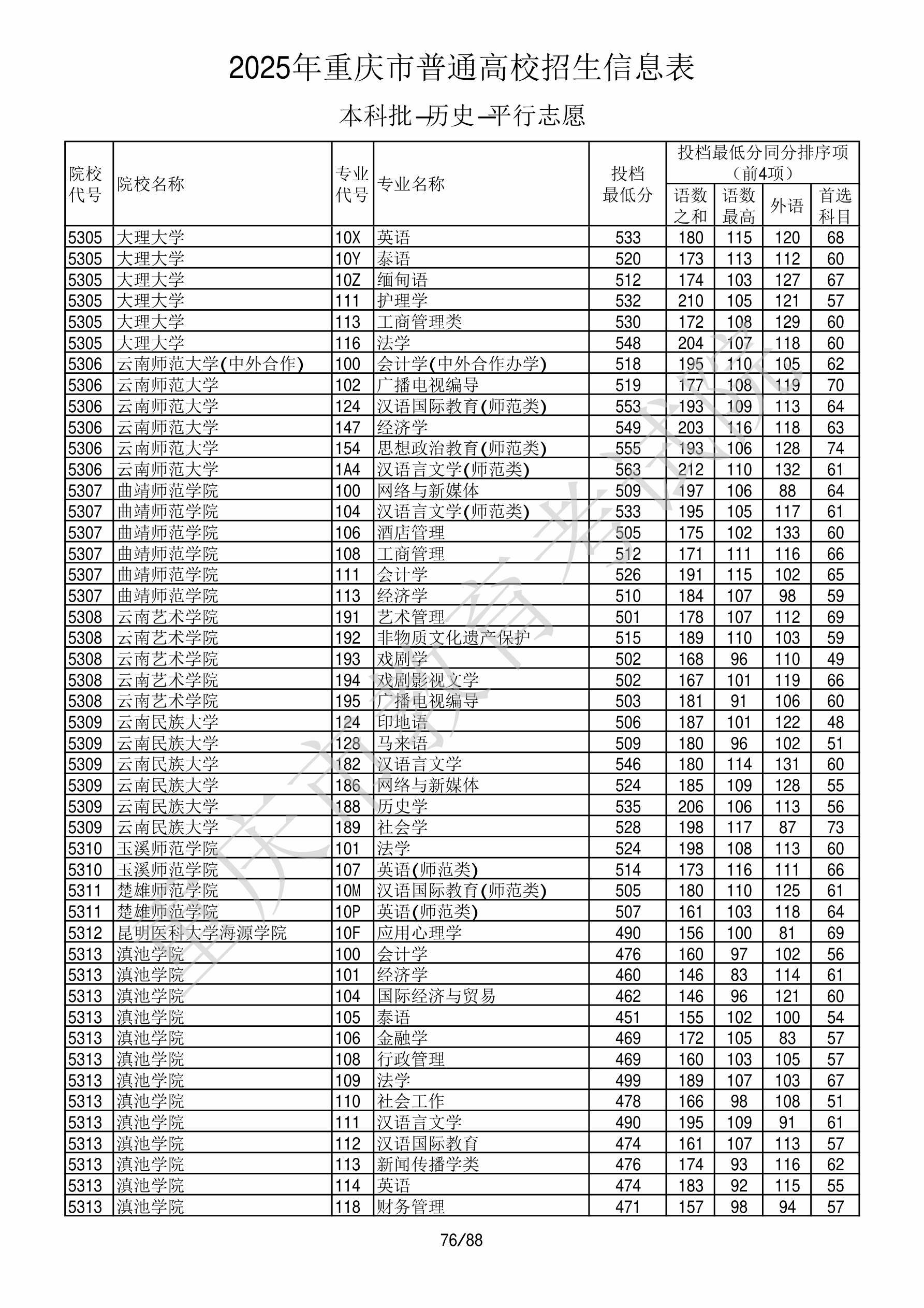 2025年重庆高考普通类本科批 云南师范大学 的 广播电视编导 专业录取分数溯源信息