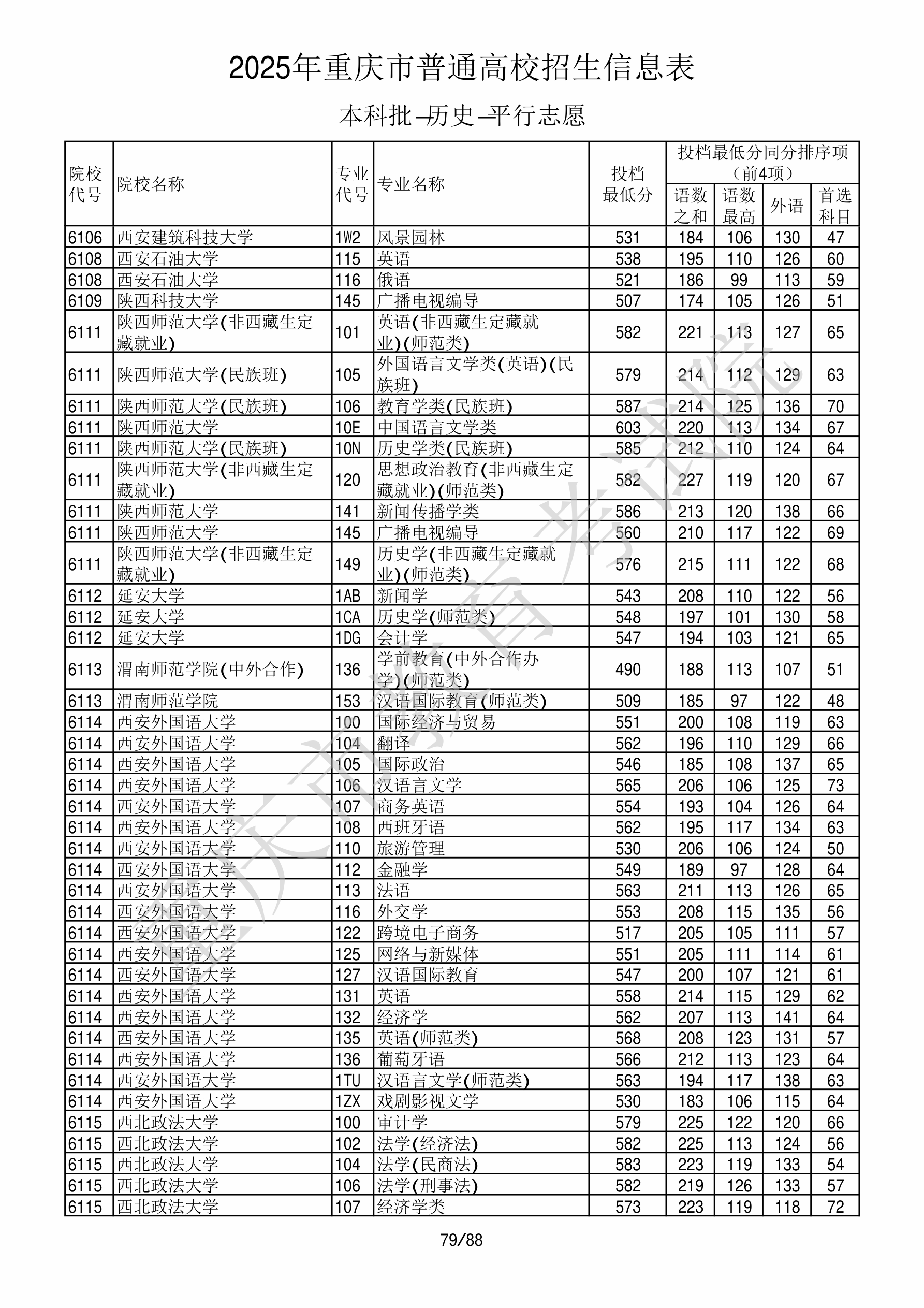2025年重庆高考普通类本科批 陕西师范大学 的 外国语言文学类 专业录取分数溯源信息