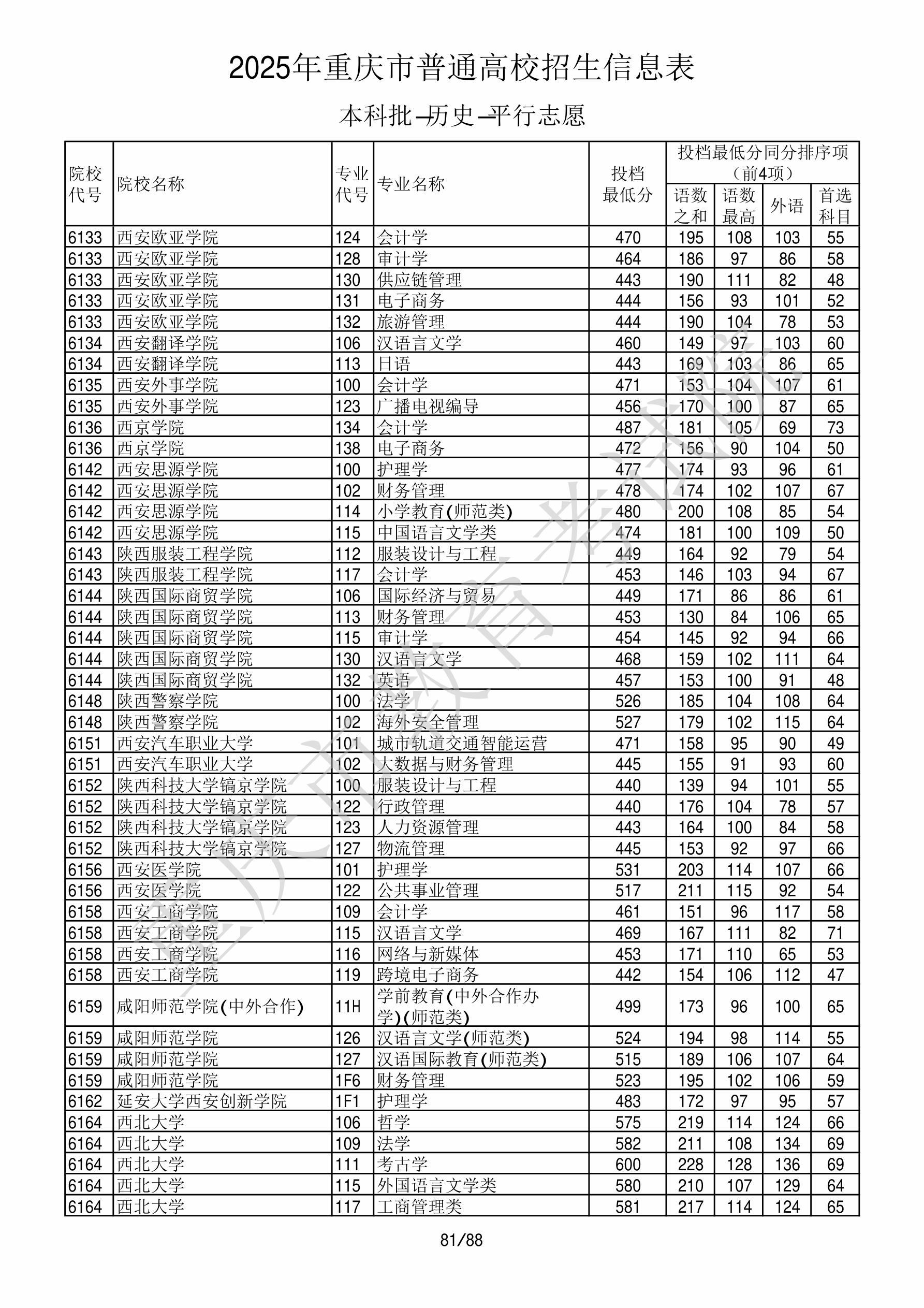 2025年重庆高考普通类本科批 西安翻译学院 的 日语 专业录取分数溯源信息