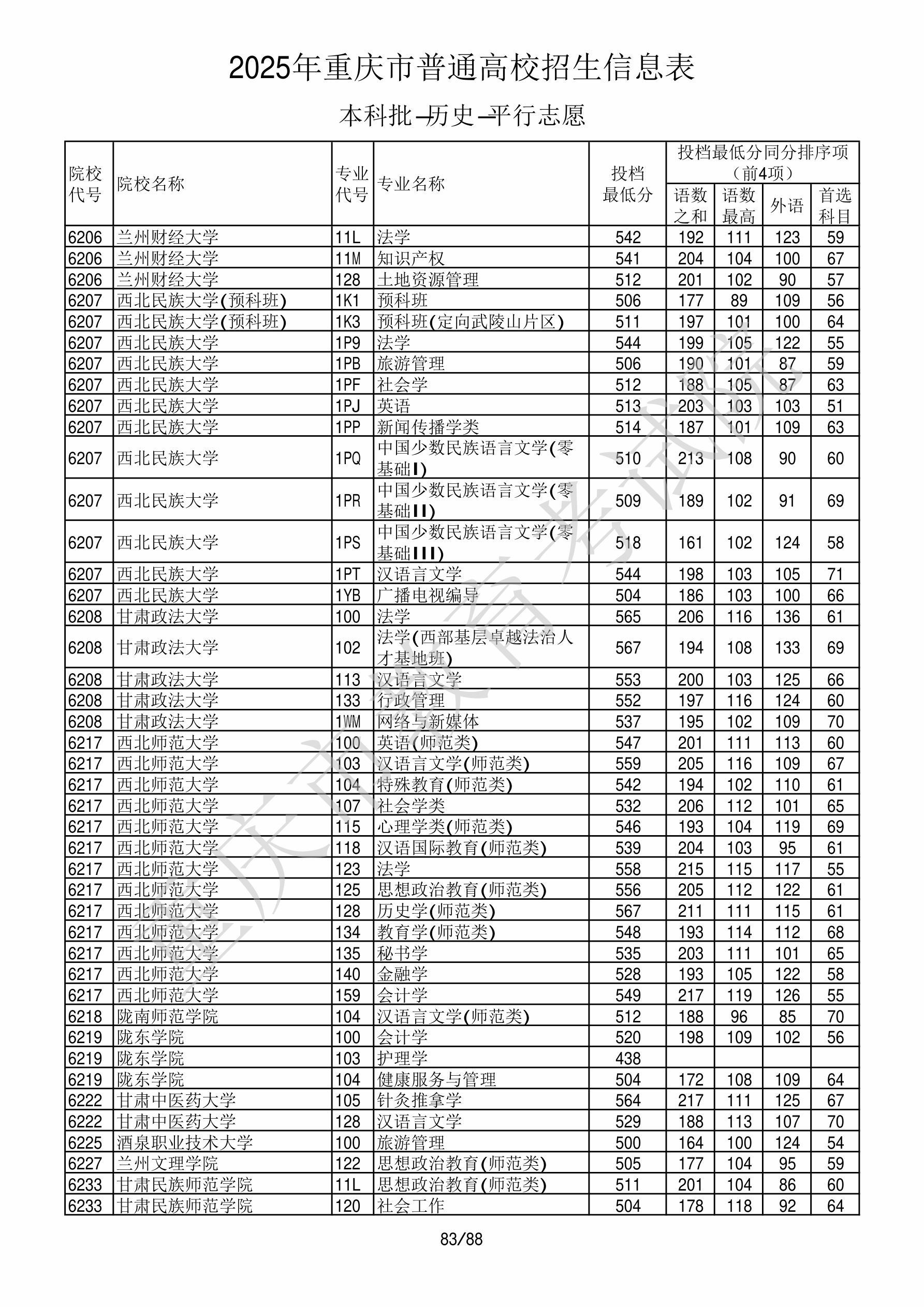2025年重庆高考普通类本科批 西北民族大学 的 中国少数民族语言文学 专业录取分数溯源信息