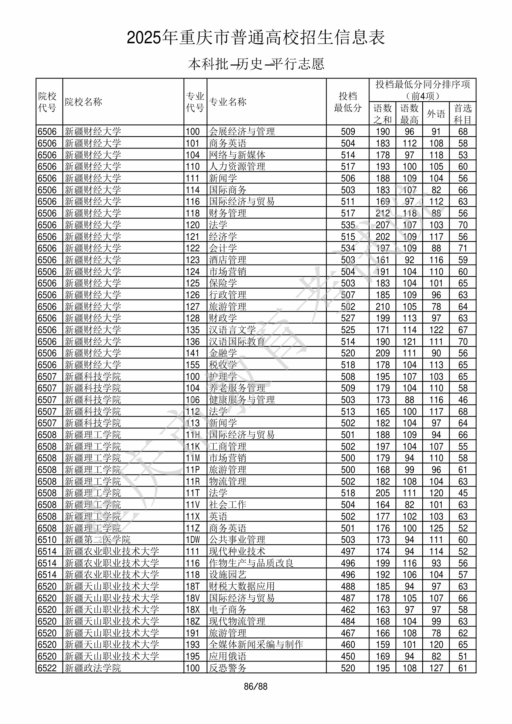2025年重庆高考普通类本科批 新疆科技学院 的 法学 专业录取分数溯源信息
