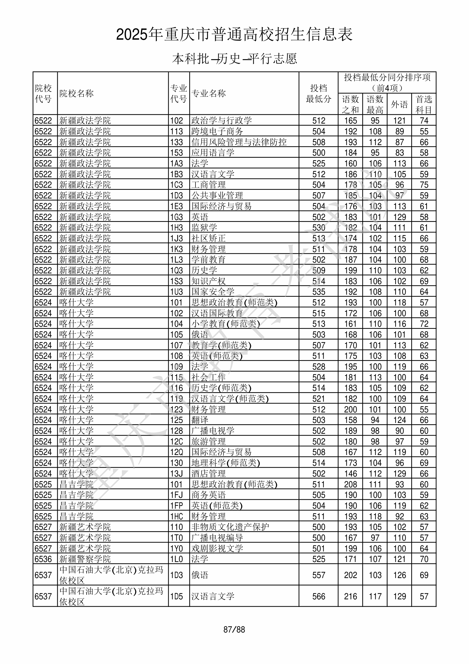 2025年重庆高考普通类本科批 昌吉学院 的 商务英语 专业录取分数溯源信息
