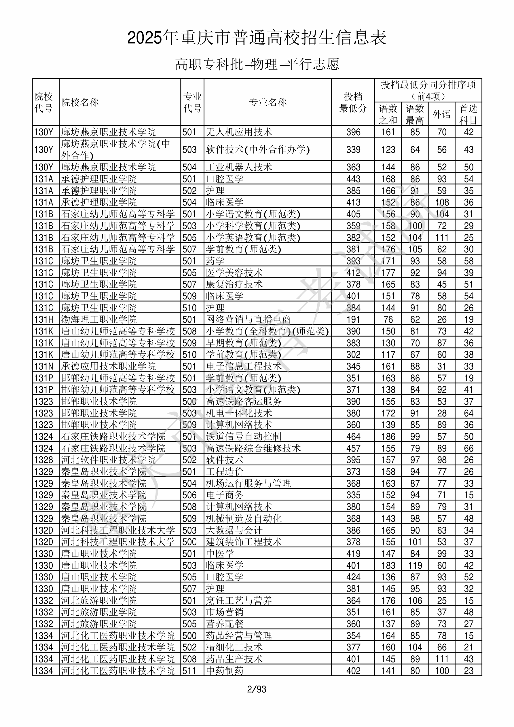 | 院校代码 | 院校名称 | 专业代码 | 专业名称 | 最低分数 | 最低位次 | 专业层次 | 限考科目 | 投档 |
