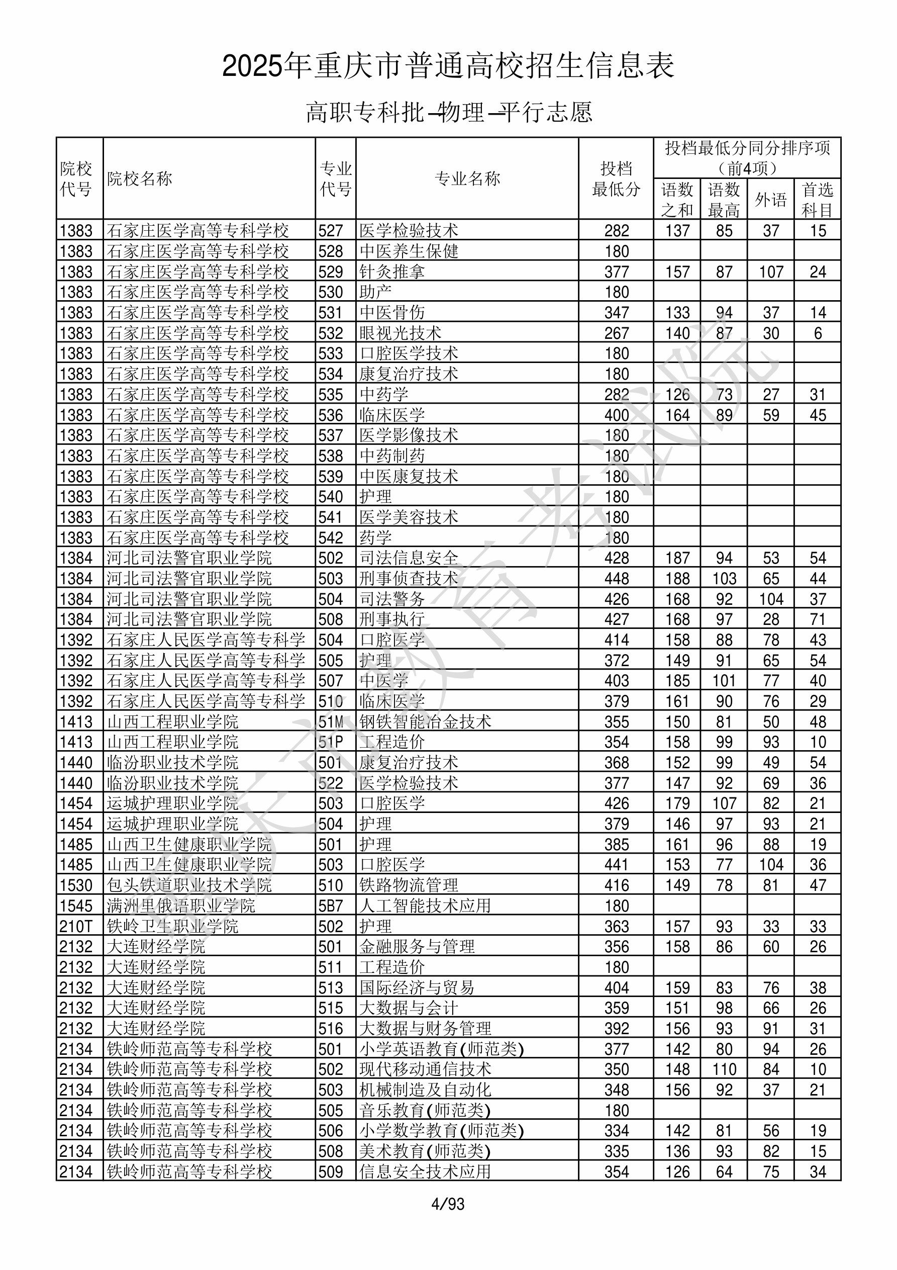 2025年重庆高考普通类高职(专科)批 河北司法警官职业学院 的 司法信息安全 专业录取分数溯源信息
