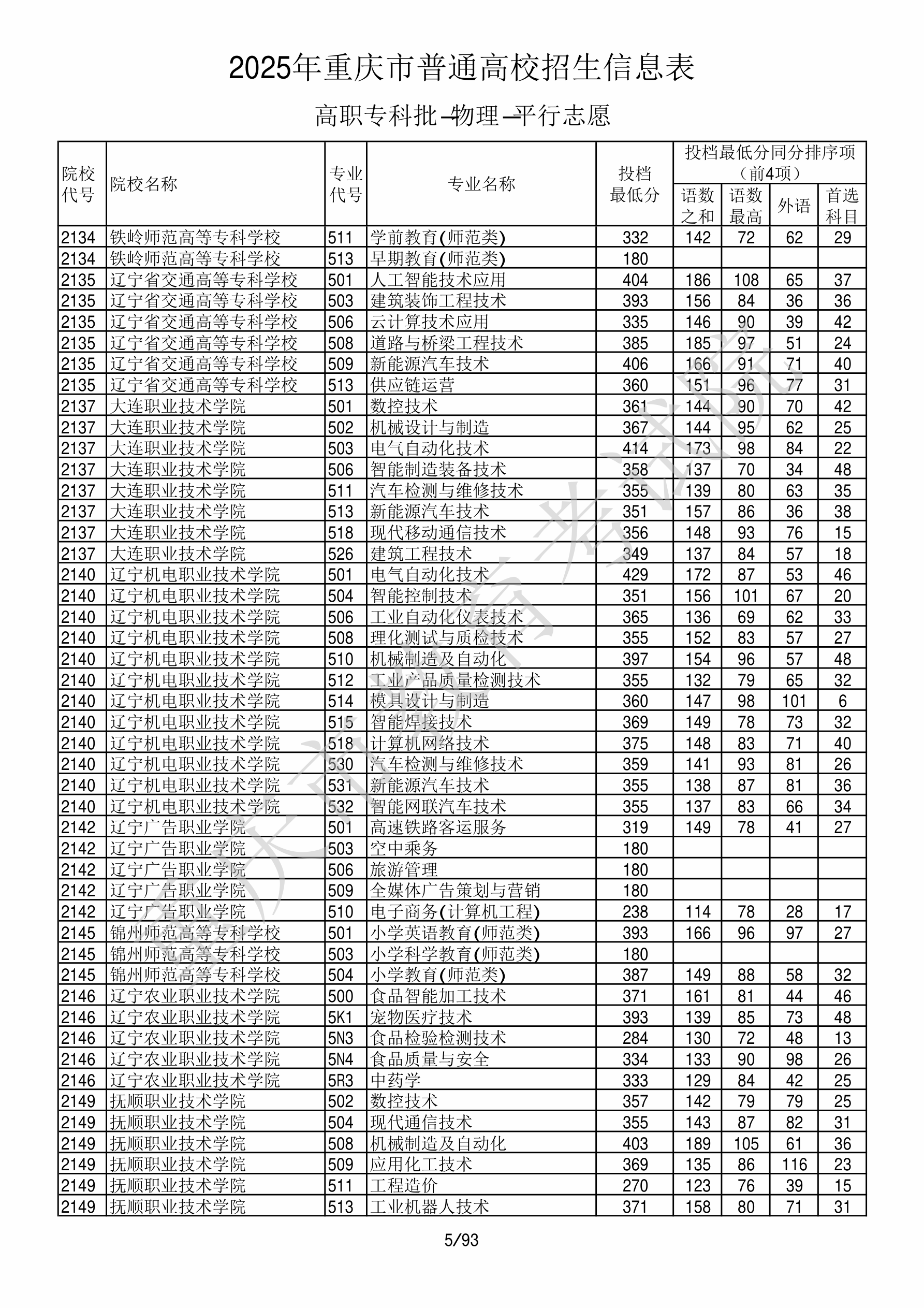 2025年重庆高考普通类高职(专科)批 锦州师范高等专科学校 的 小学科学教育 专业录取分数溯源信息