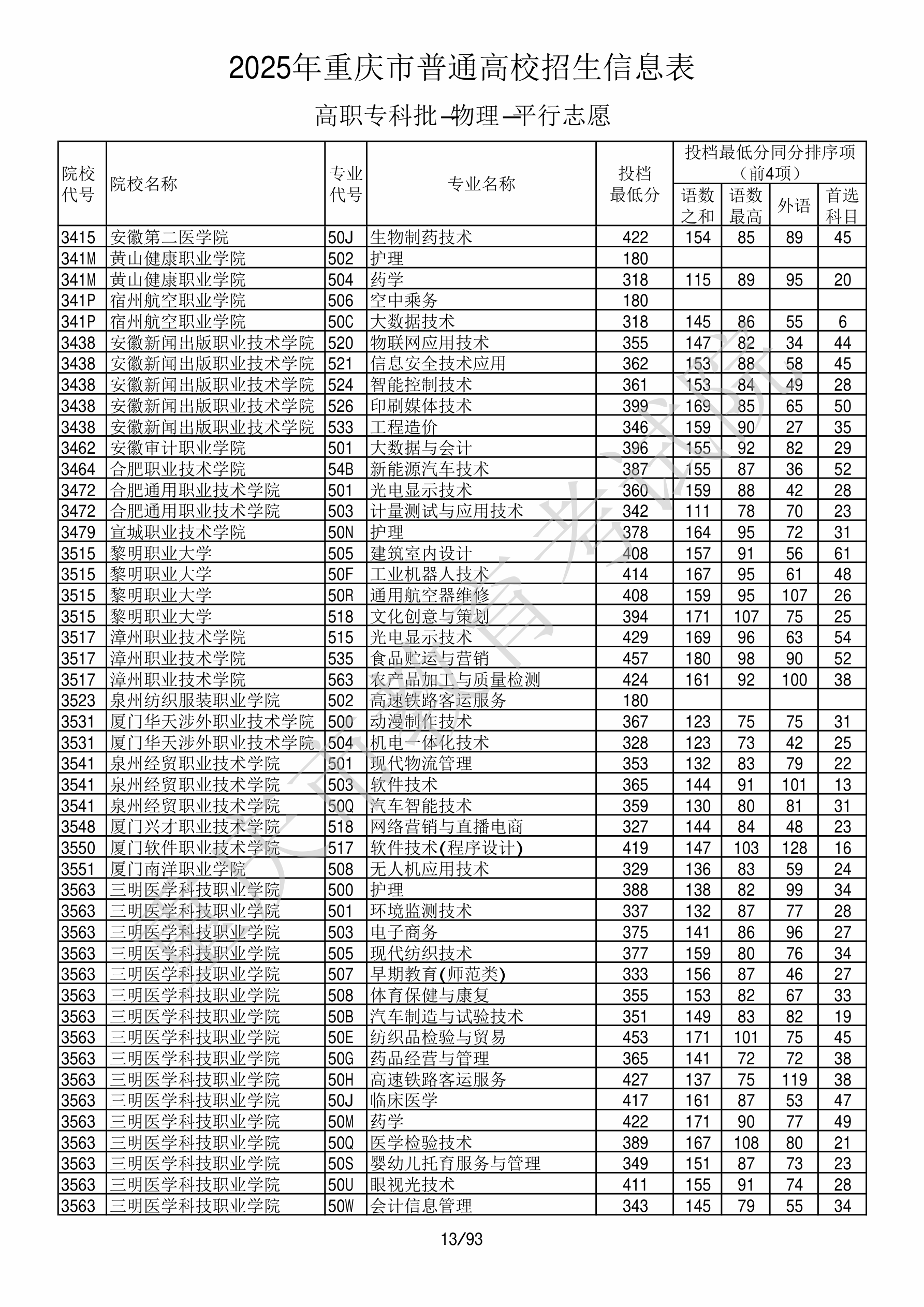 2025年重庆高考普通类高职(专科)批 合肥通用职业技术学院 的 计量测试与应用技术 专业录取分数溯源信息