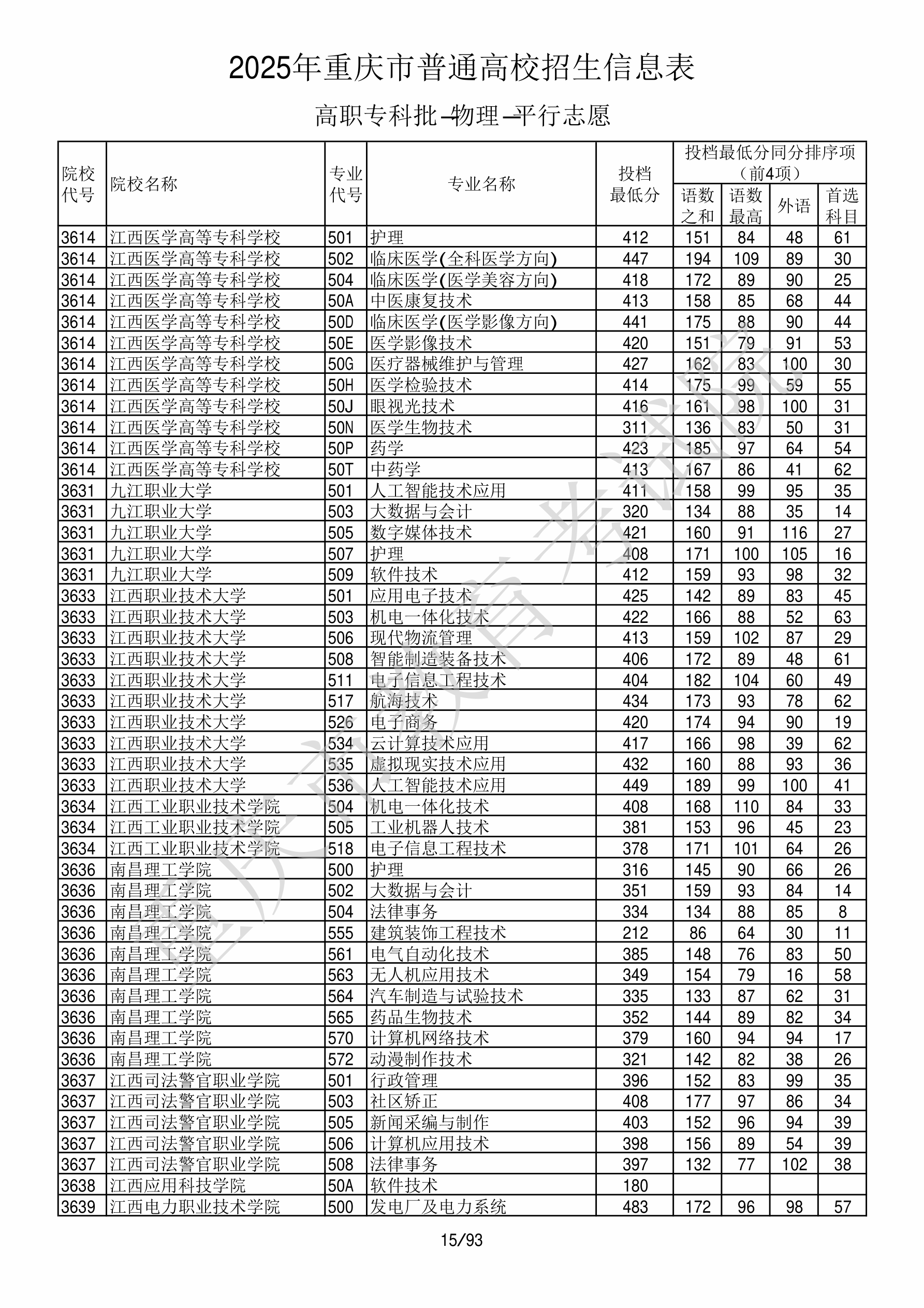 2025年重庆高考普通类高职(专科)批 江西应用科技学院 的 软件技术 专业录取分数溯源信息