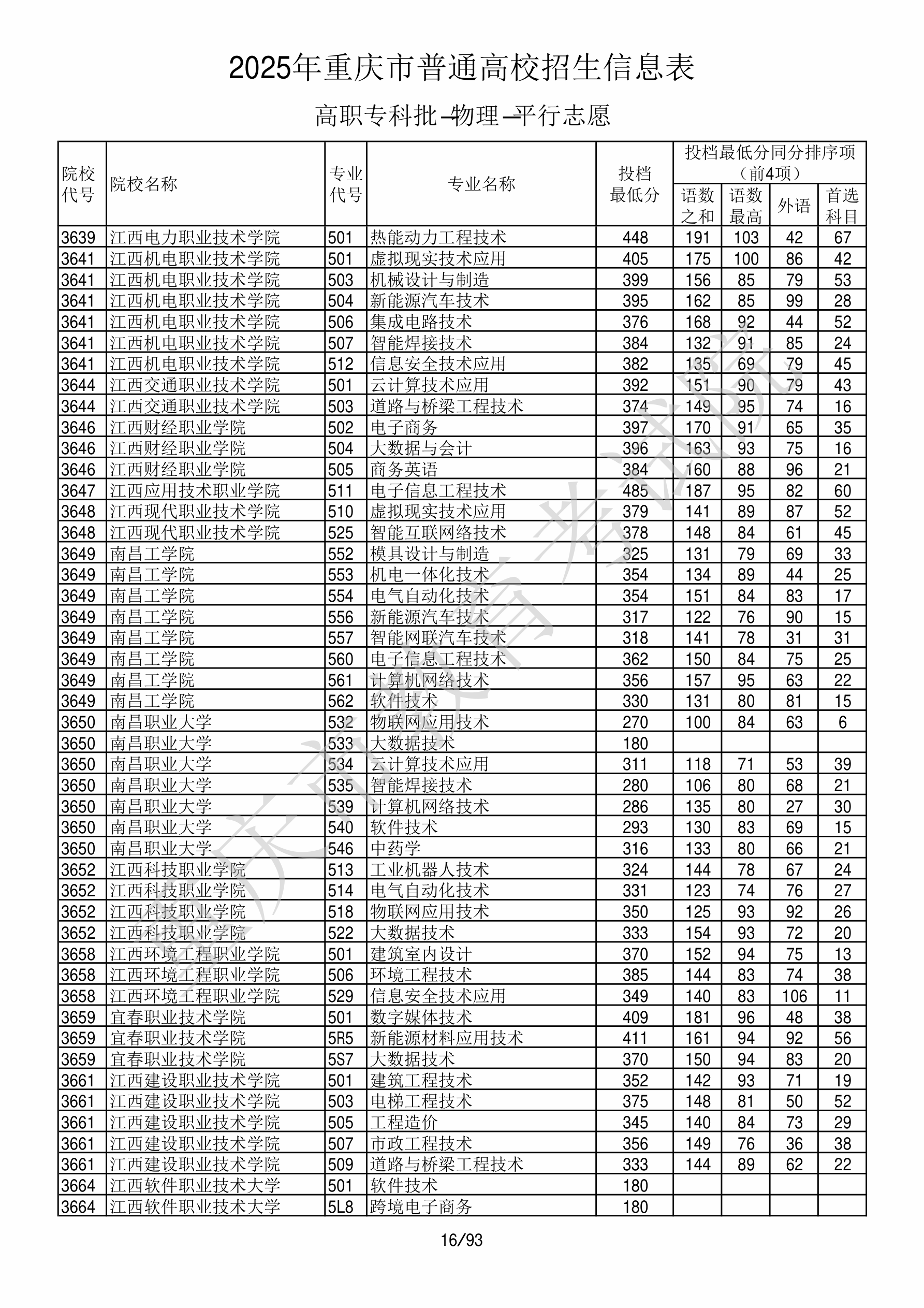 2025年重庆高考普通类高职(专科)批 江西财经职业学院 的 电子商务 专业录取分数溯源信息