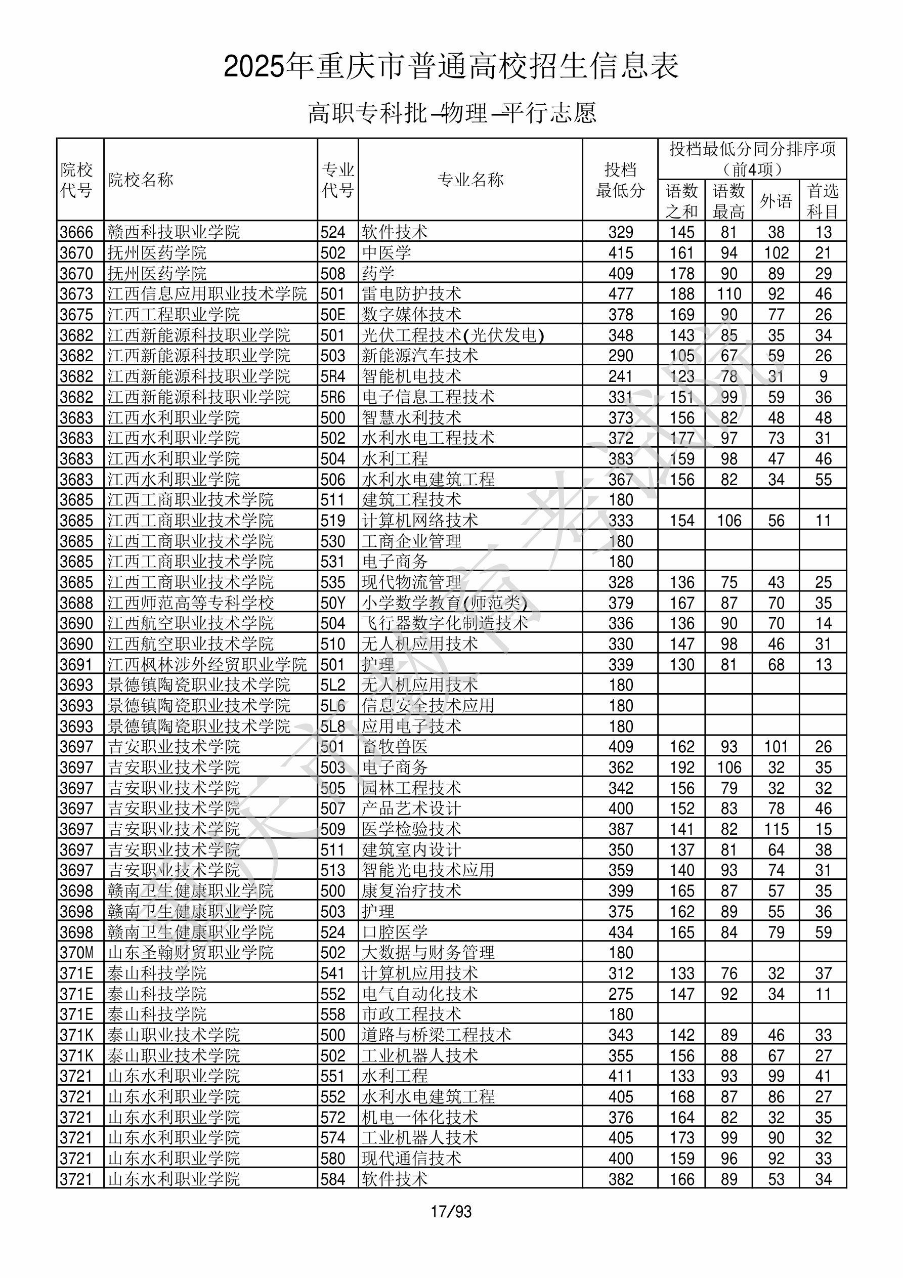 2025年重庆高考普通类高职(专科)批 泰山科技学院 的 计算机应用技术 专业录取分数溯源信息