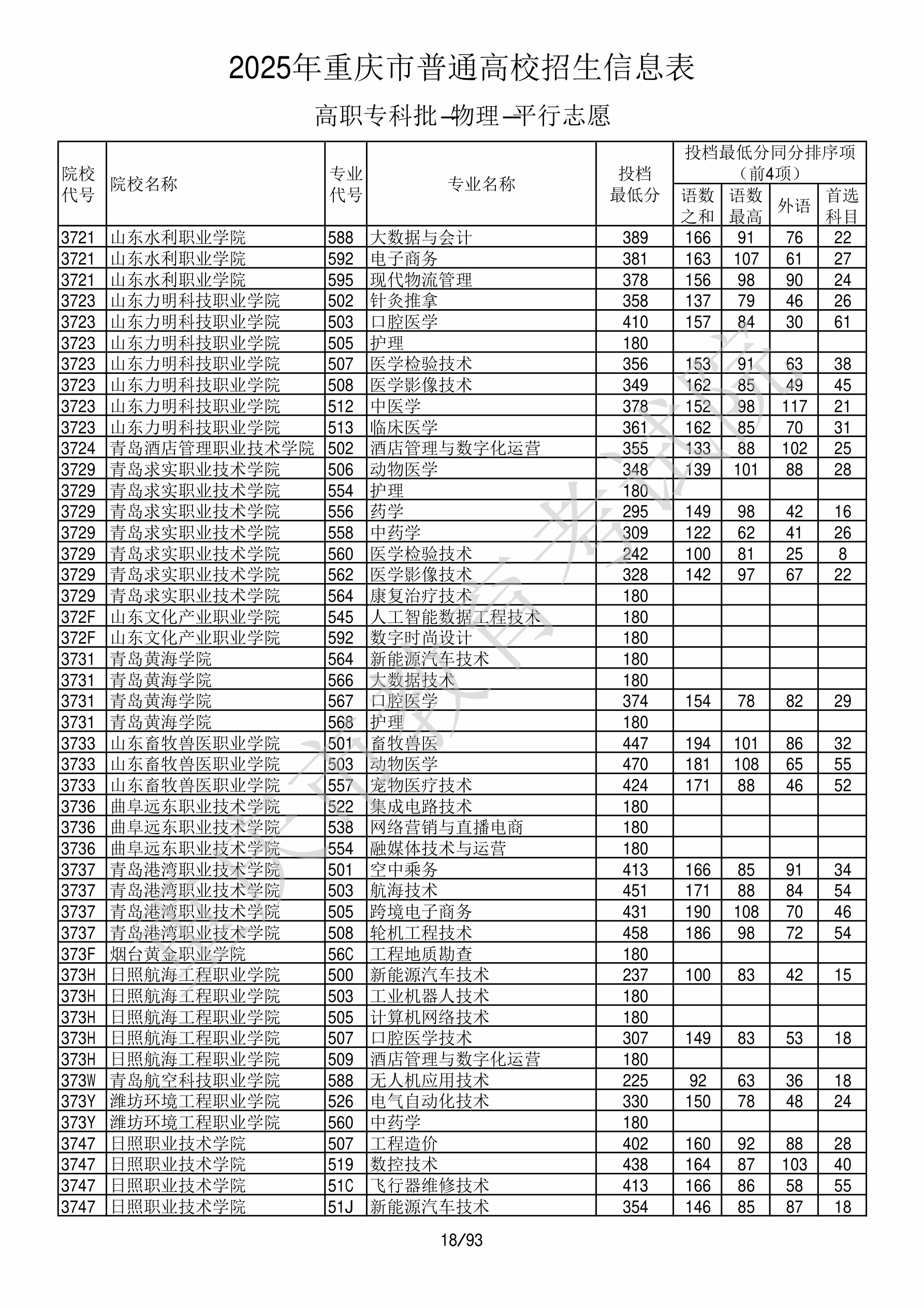 | 372F | 山东文化产业职业学院 | 545 | 人工智能数据工程技术 | 180 | 139478 | 专科 | 物理 ,再选: 不限 | 1,2,3 |