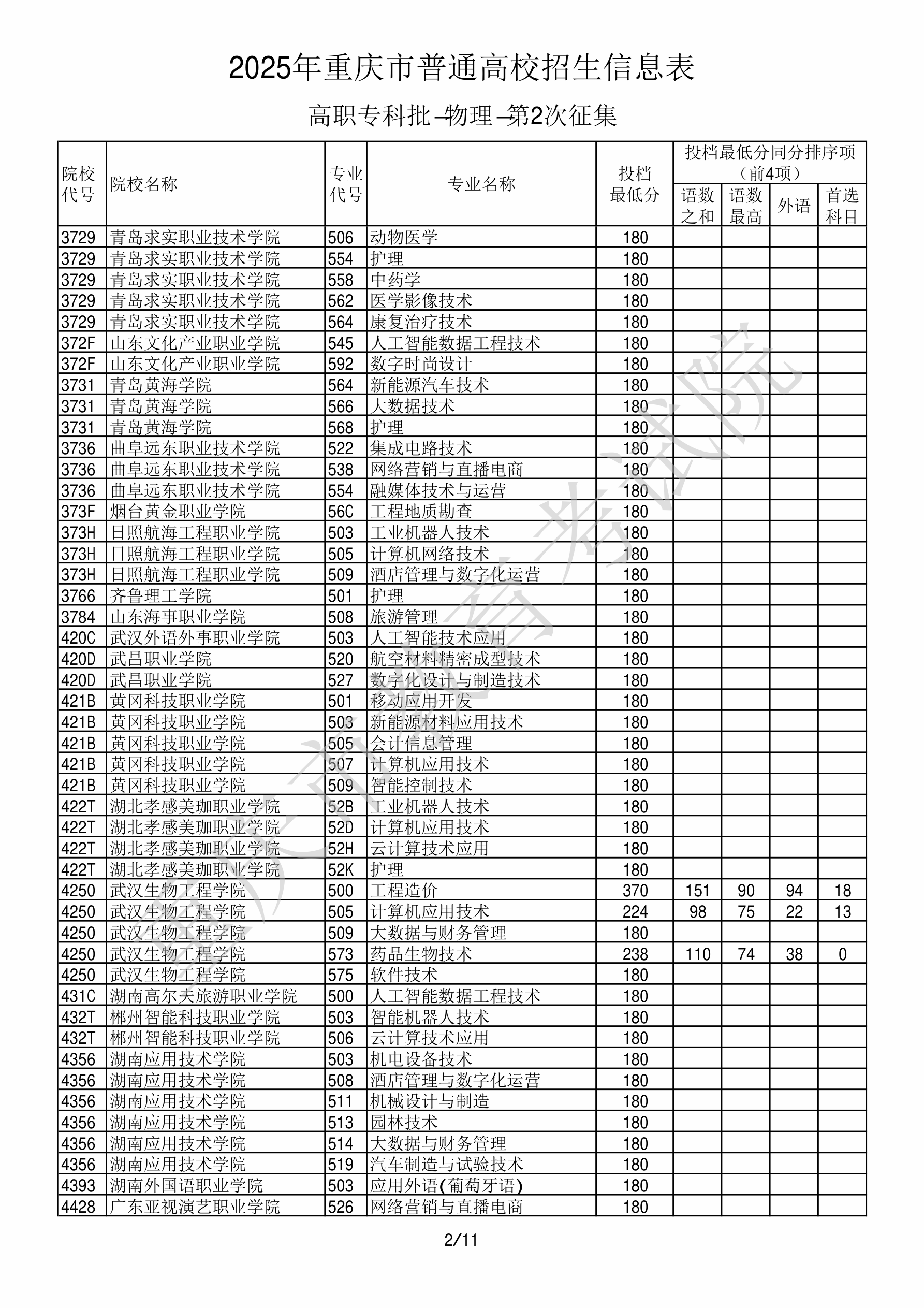 2025年重庆高考普通类高职(专科)批 齐鲁理工学院 的 护理 专业录取分数溯源信息