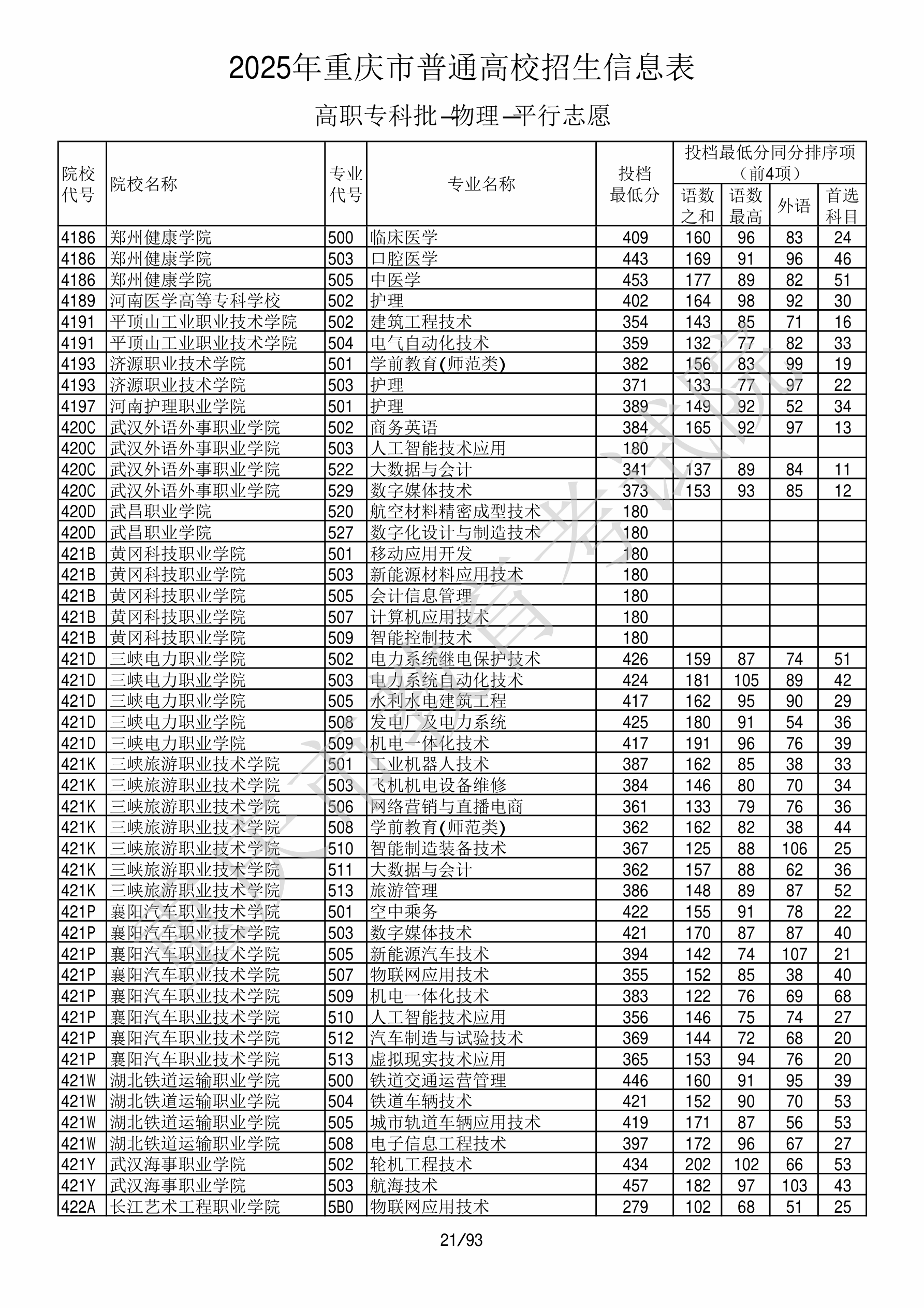 2025年重庆高考普通类高职(专科)批 湖北铁道运输职业学院 的 铁道车辆技术 专业录取分数溯源信息