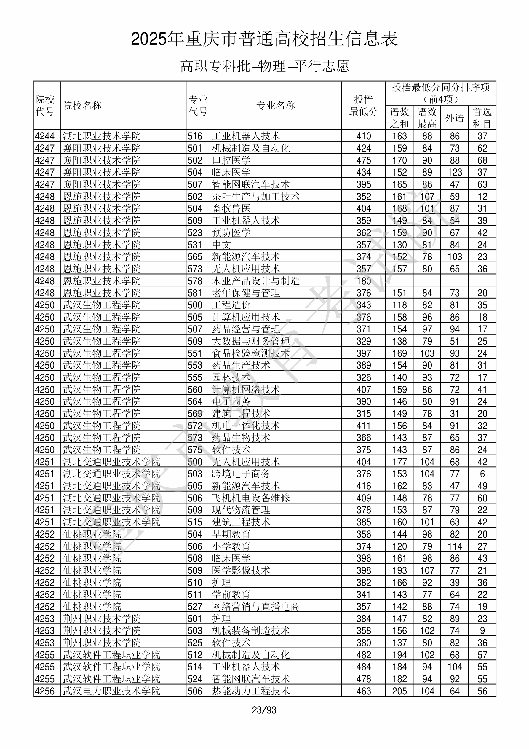 2025年重庆高考普通类高职(专科)批 武汉生物工程学院 的 大数据与财务管理 专业录取分数溯源信息