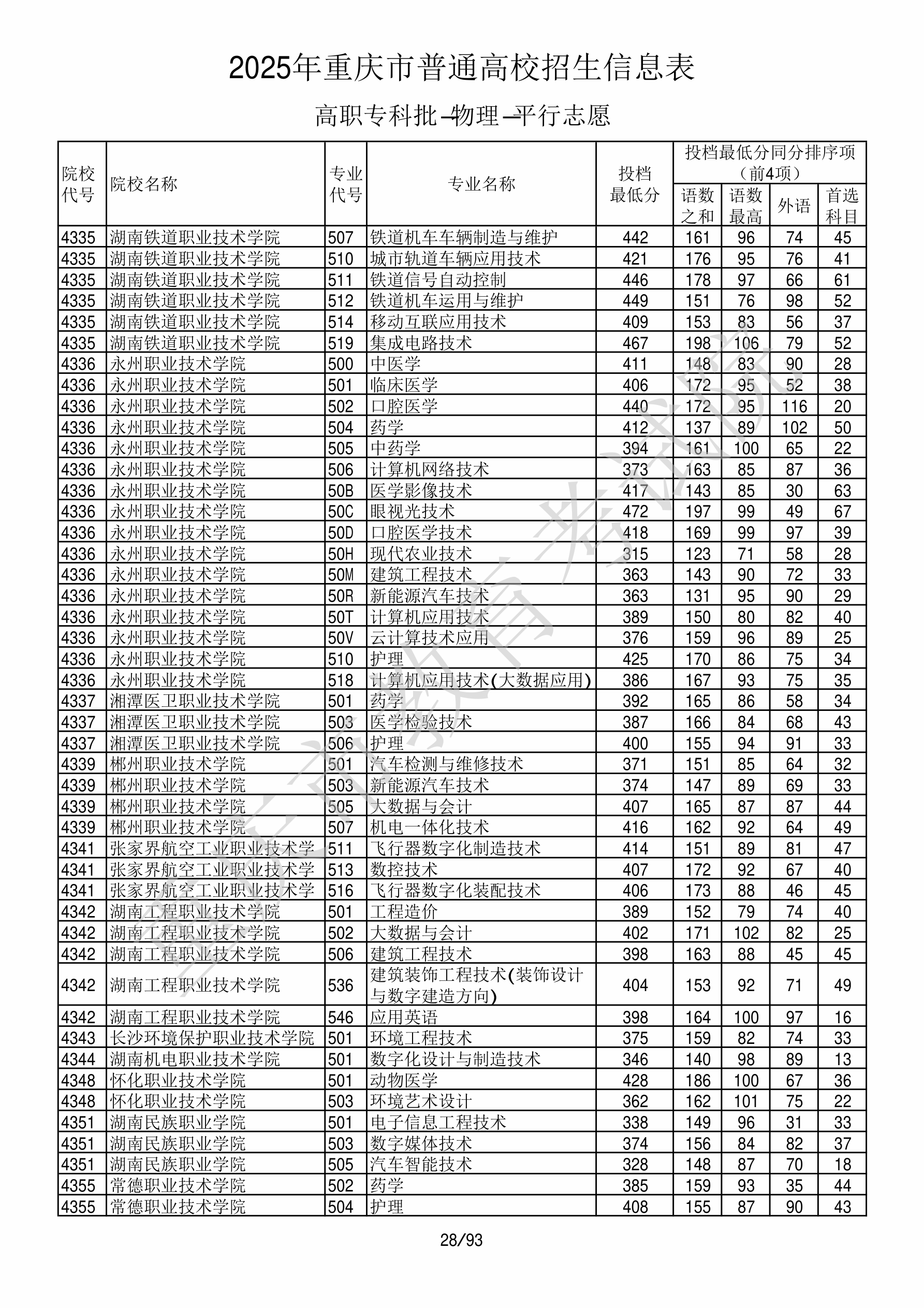 2025年重庆高考普通类高职(专科)批 郴州职业技术学院 的 大数据与会计 专业录取分数溯源信息