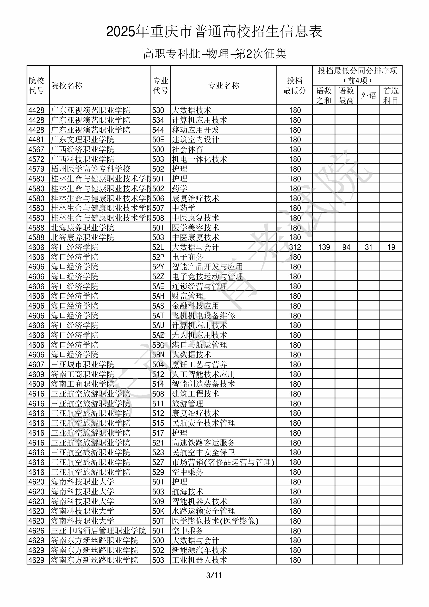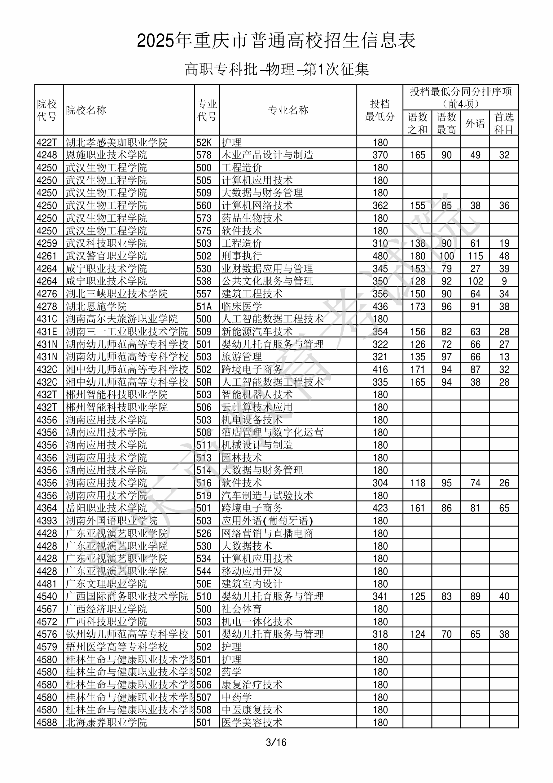 2025年重庆高考普通类高职(专科)批 桂林生命与健康职业技术学院 的 康复治疗技术 专业录取分数溯源信息
