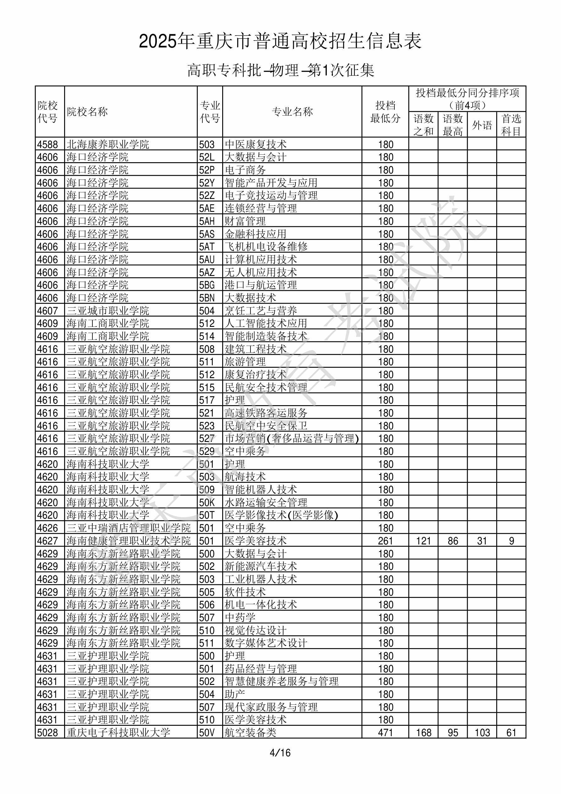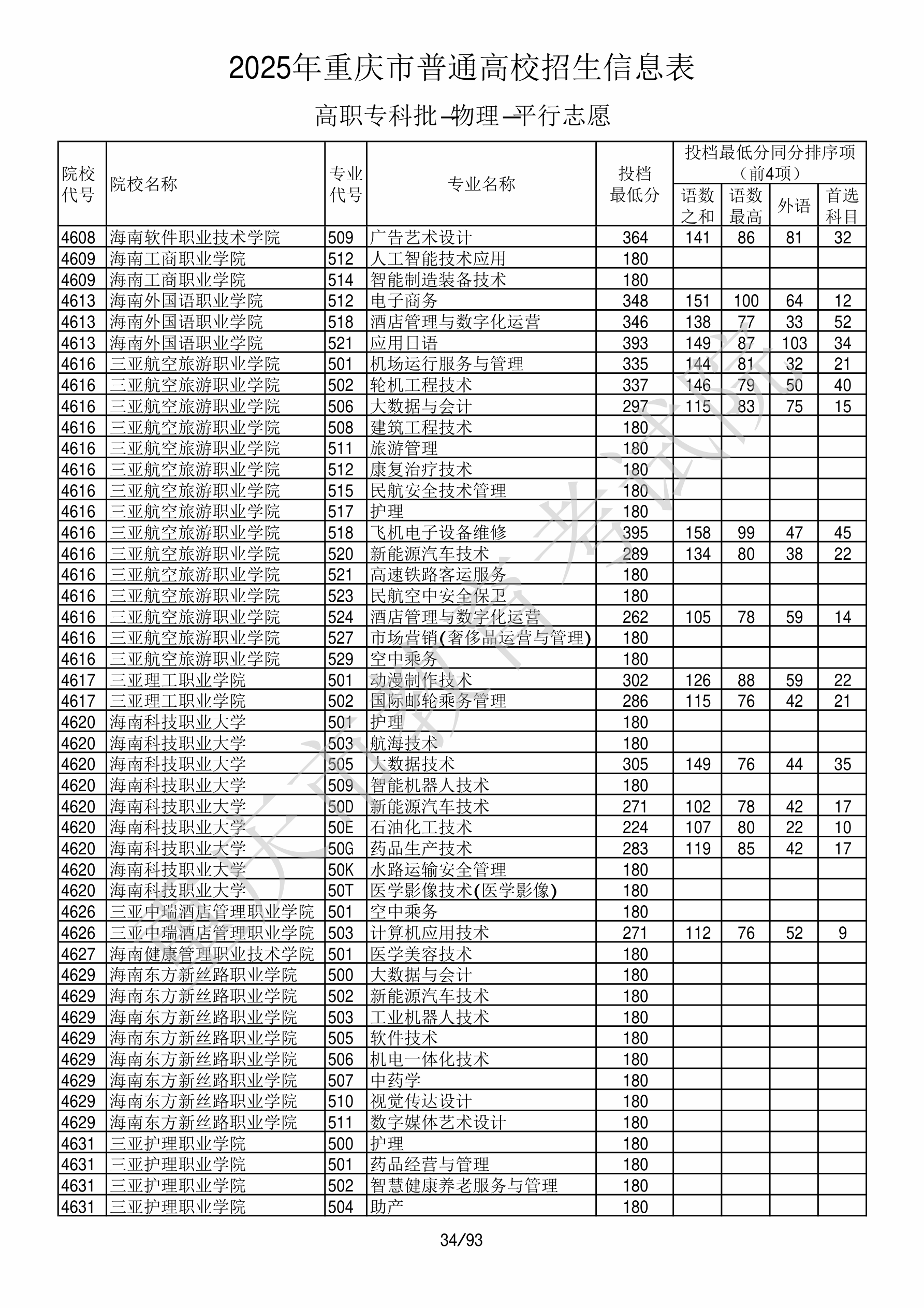 2025年重庆高考普通类高职(专科)批 海南东方新丝路职业学院 的 大数据与会计 专业录取分数溯源信息