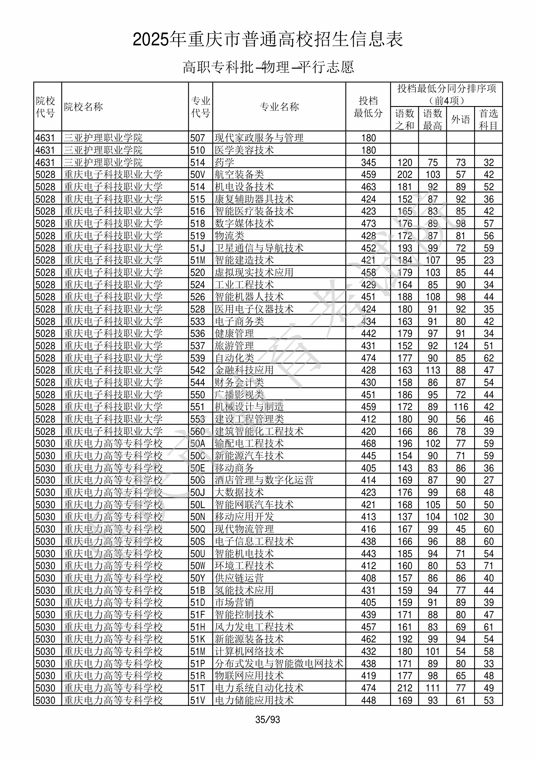 2025年重庆高考普通类高职(专科)批 三亚护理职业学院 的 医学美容技术 专业录取分数溯源信息