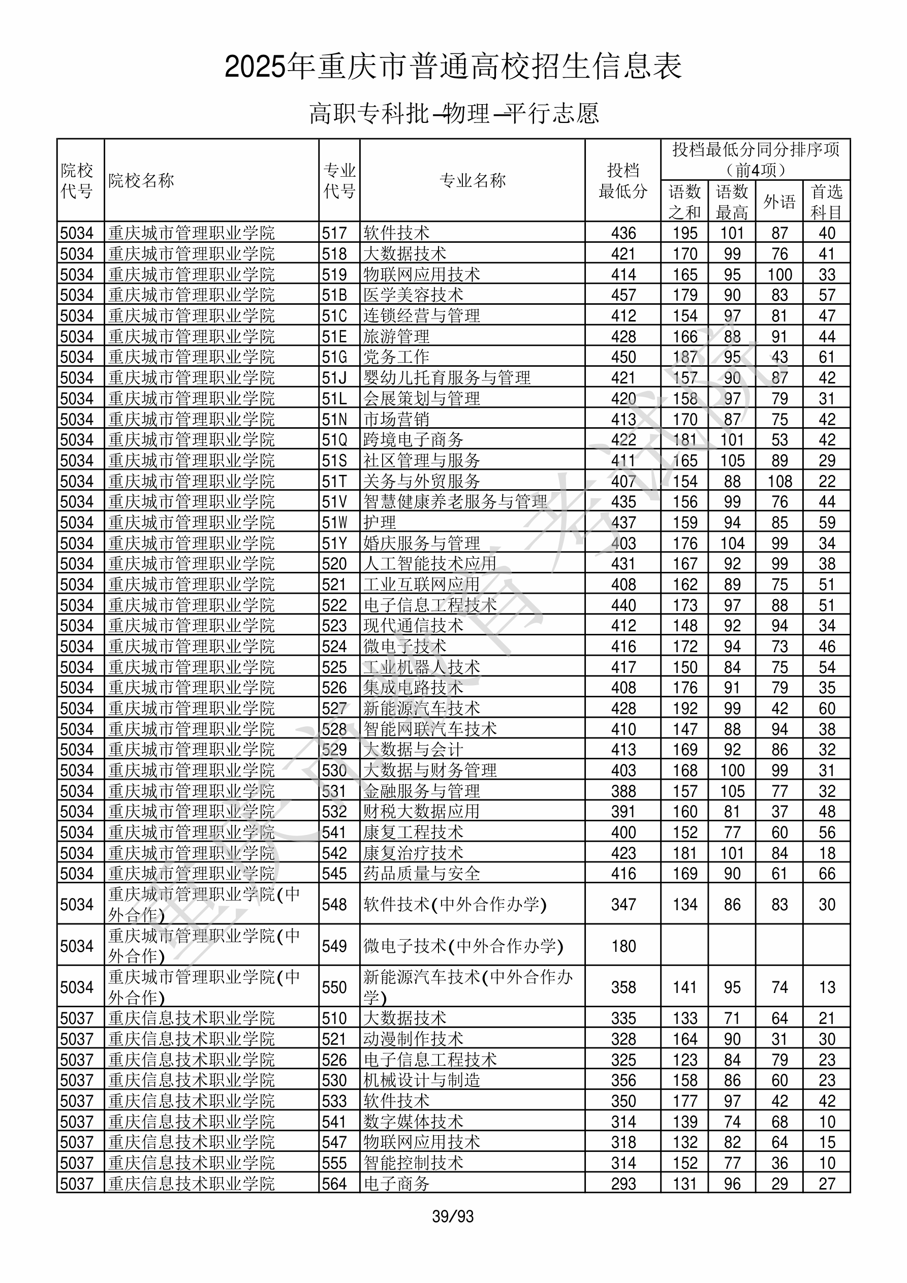 2025年重庆高考普通类高职(专科)批 重庆信息技术职业学院 的 动漫制作技术 专业录取分数溯源信息