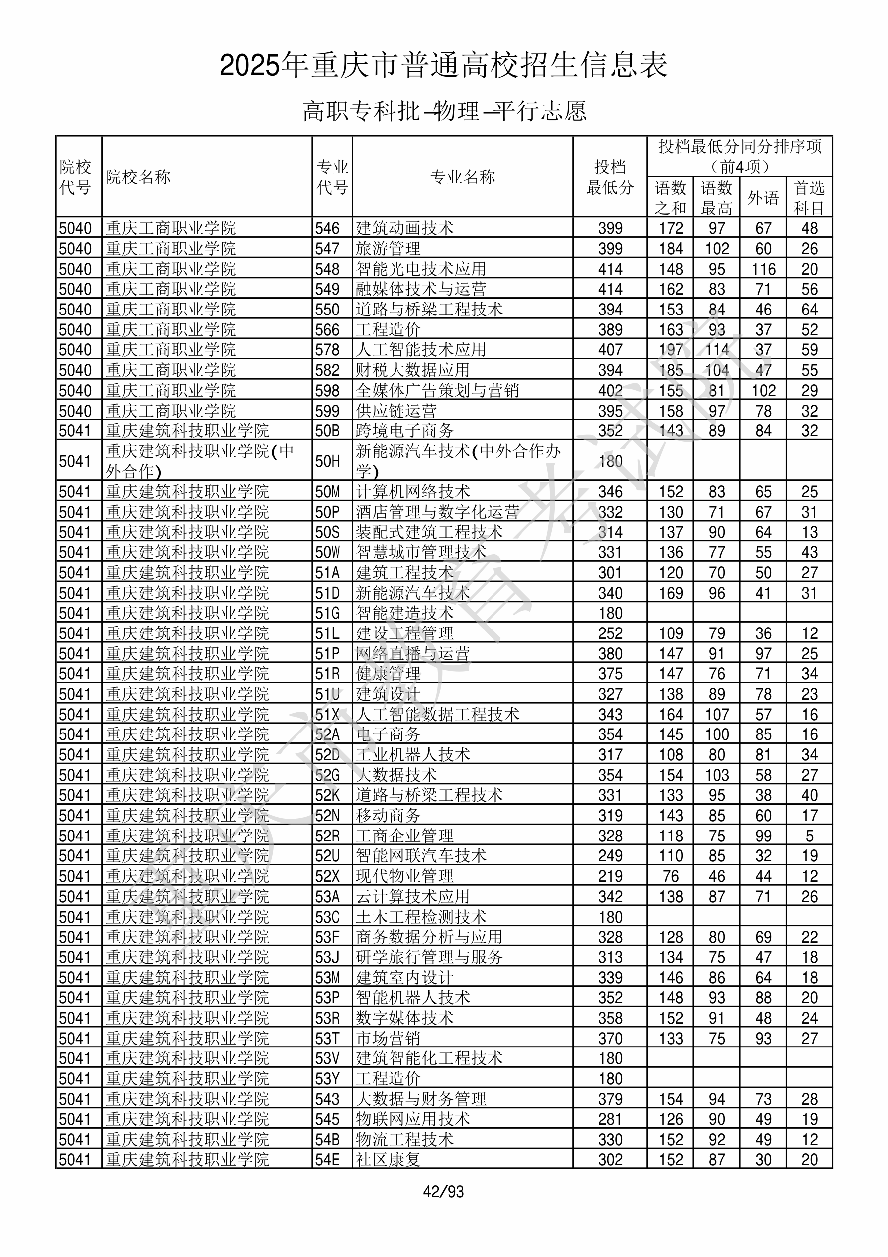 2025年重庆高考普通类高职(专科)批 重庆工商职业学院 的 智能光电技术应用 专业录取分数溯源信息