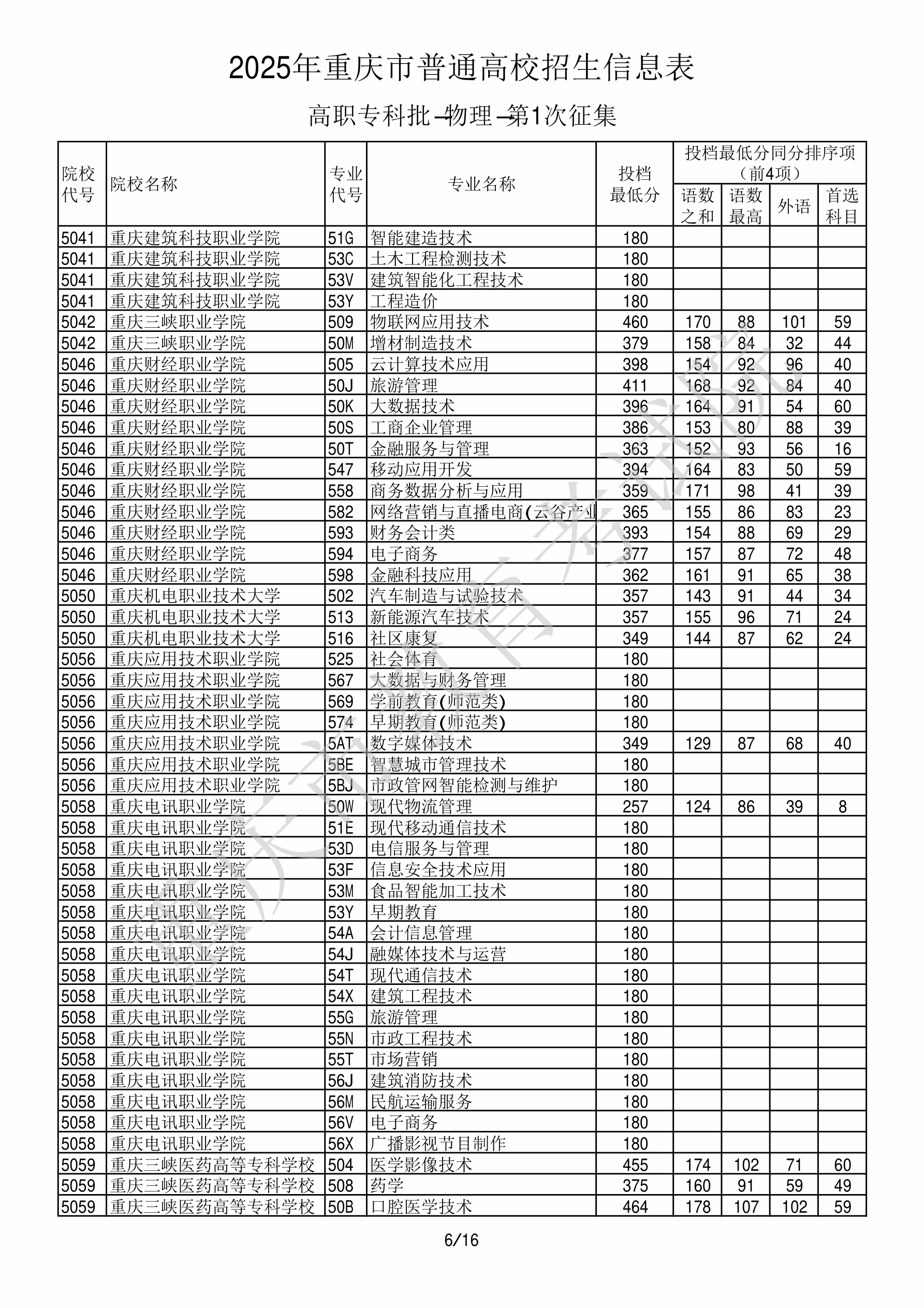 | 5046 | 重庆财经职业学院 | 50T | 金融服务与管理 | 363 | 124163 | 专科 | 物理 ,再选: 不限 | 1,2 |