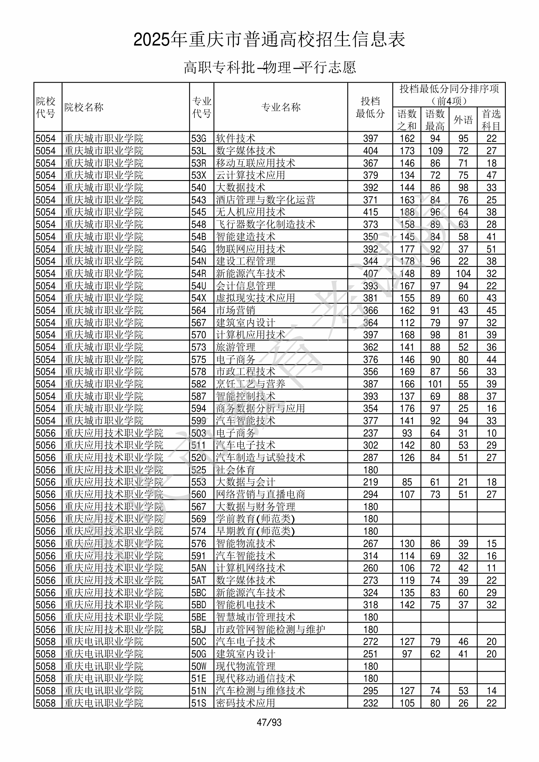 | 5054 | 重庆城市职业学院 | 587 | 智能控制技术 | 393 | 115614 | 专科 | 物理 ,再选: 不限 | 1 |