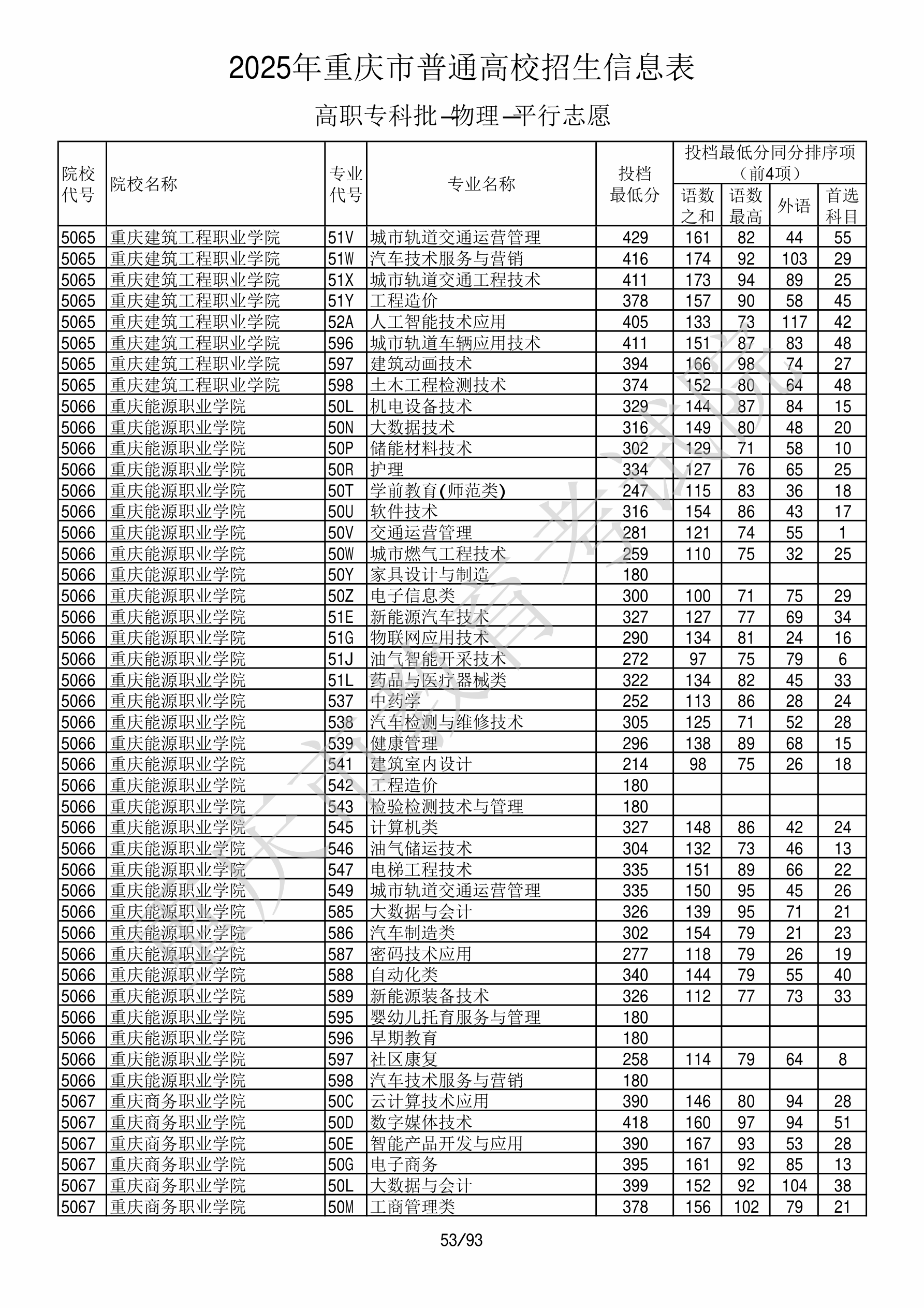 2025年重庆高考普通类高职(专科)批 重庆建筑工程职业学院 的 人工智能技术应用 专业录取分数溯源信息