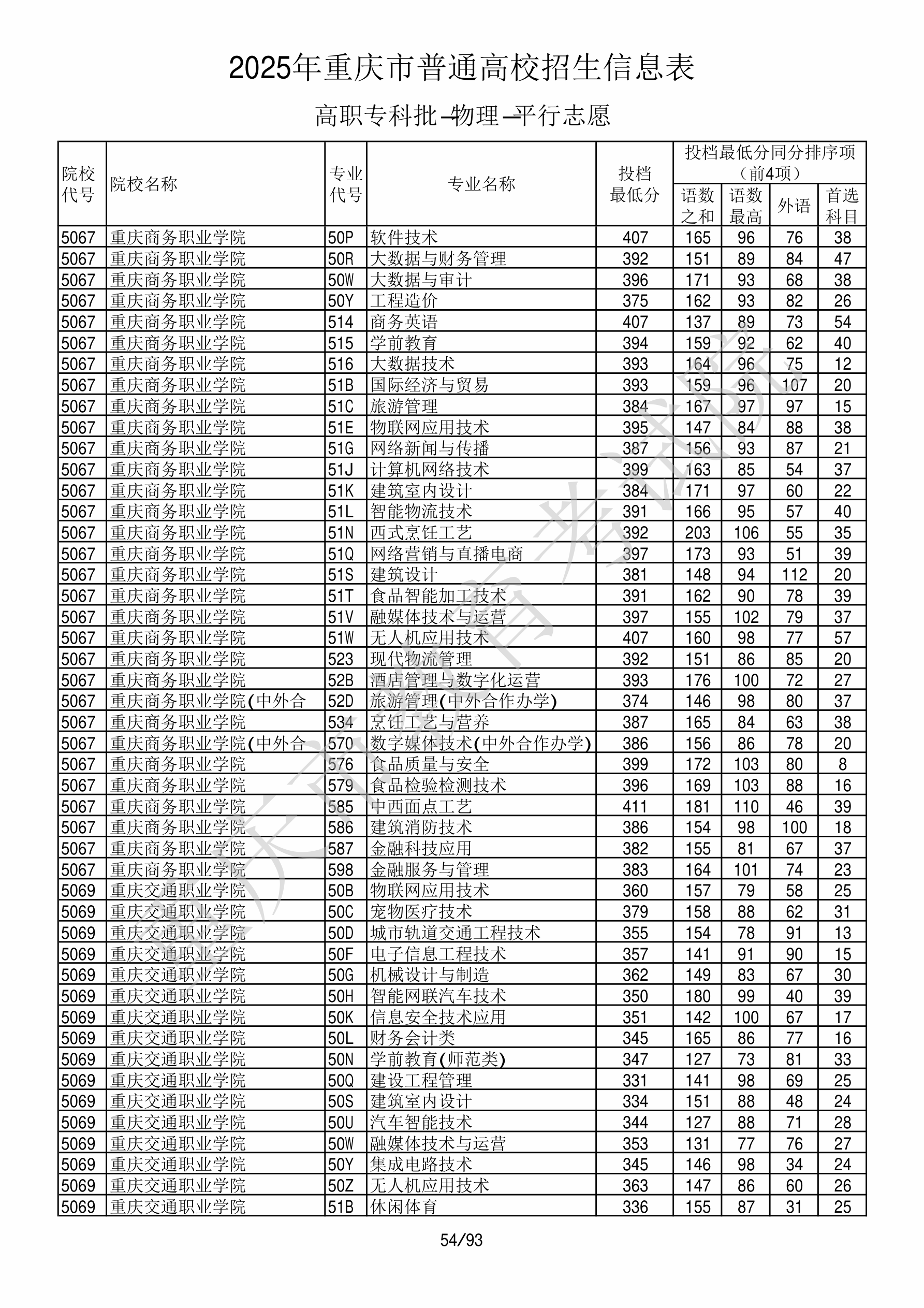 2025年重庆高考普通类高职(专科)批 重庆商务职业学院 的 旅游管理 专业录取分数溯源信息