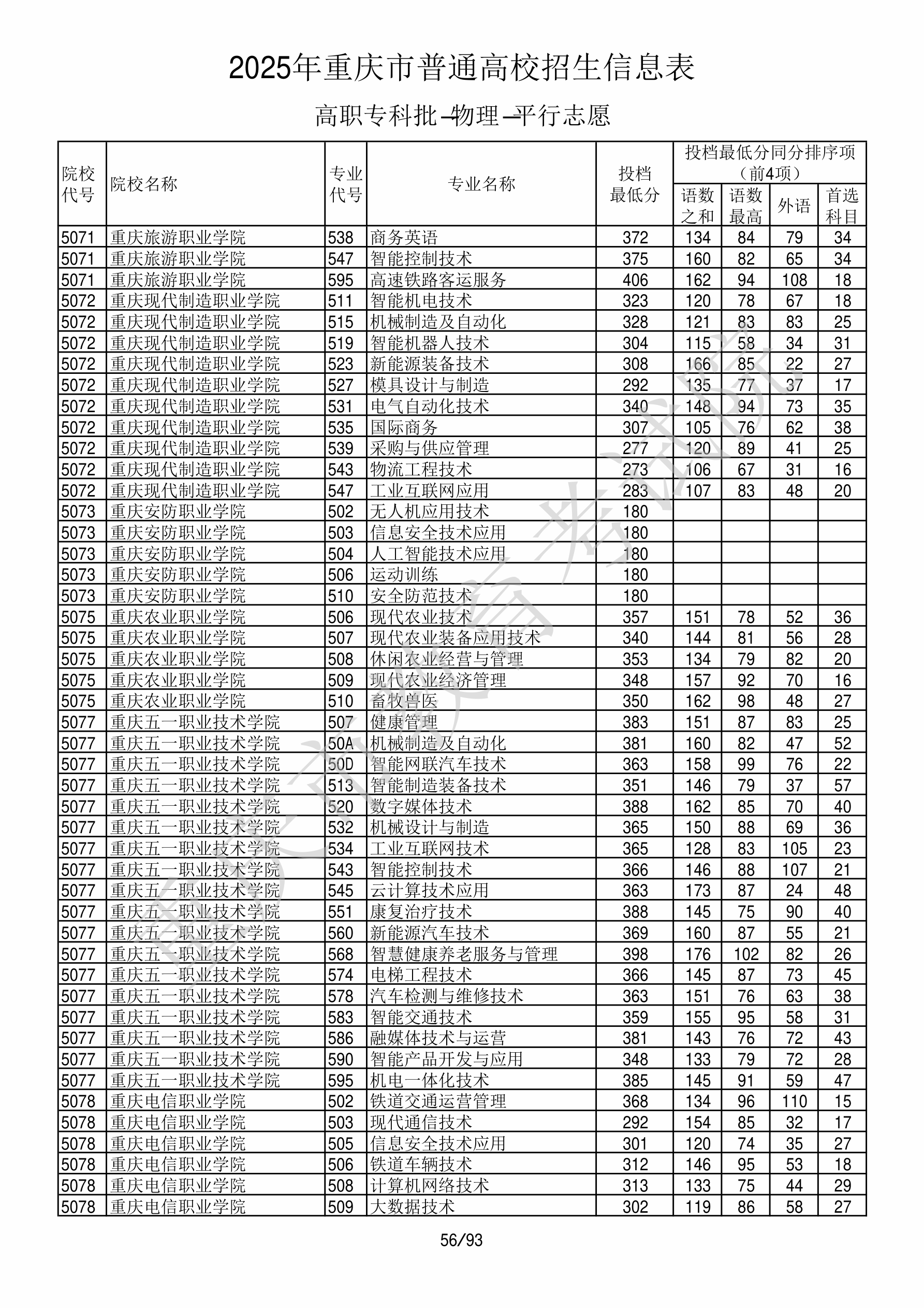 | 5077 | 重庆五一职业技术学院 | 586 | 融媒体技术与运营 | 381 | 119416 | 专科 | 物理 ,再选: 不限 | 1 |