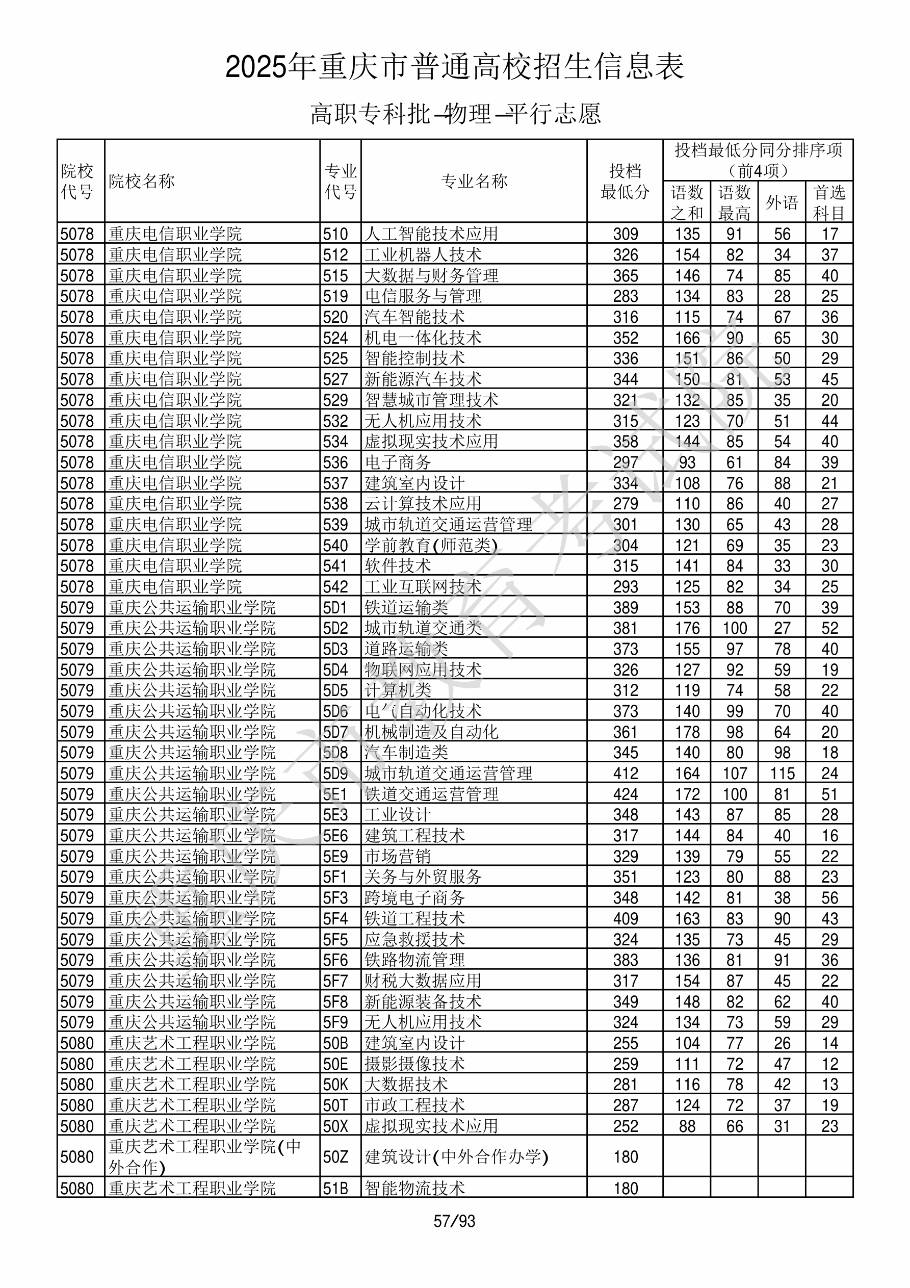 2025年重庆高考普通类高职(专科)批 重庆公共运输职业学院 的 物联网应用技术 专业录取分数溯源信息