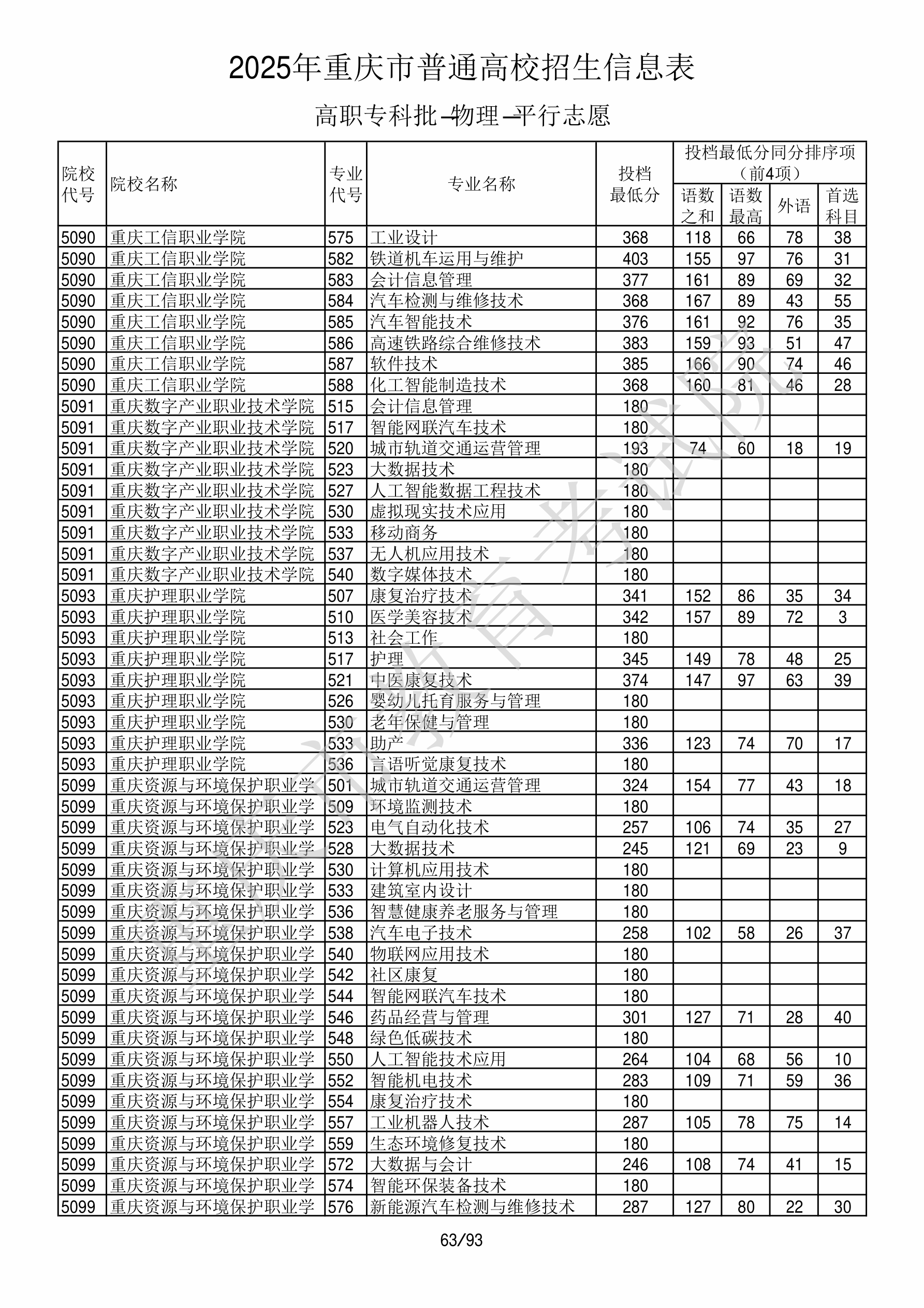 | 5091 | 重庆数字产业职业技术学院 | 540 | 数字媒体技术 | 180 | 139478 | 专科 | 物理 ,再选: 不限 | 1,2,3 |