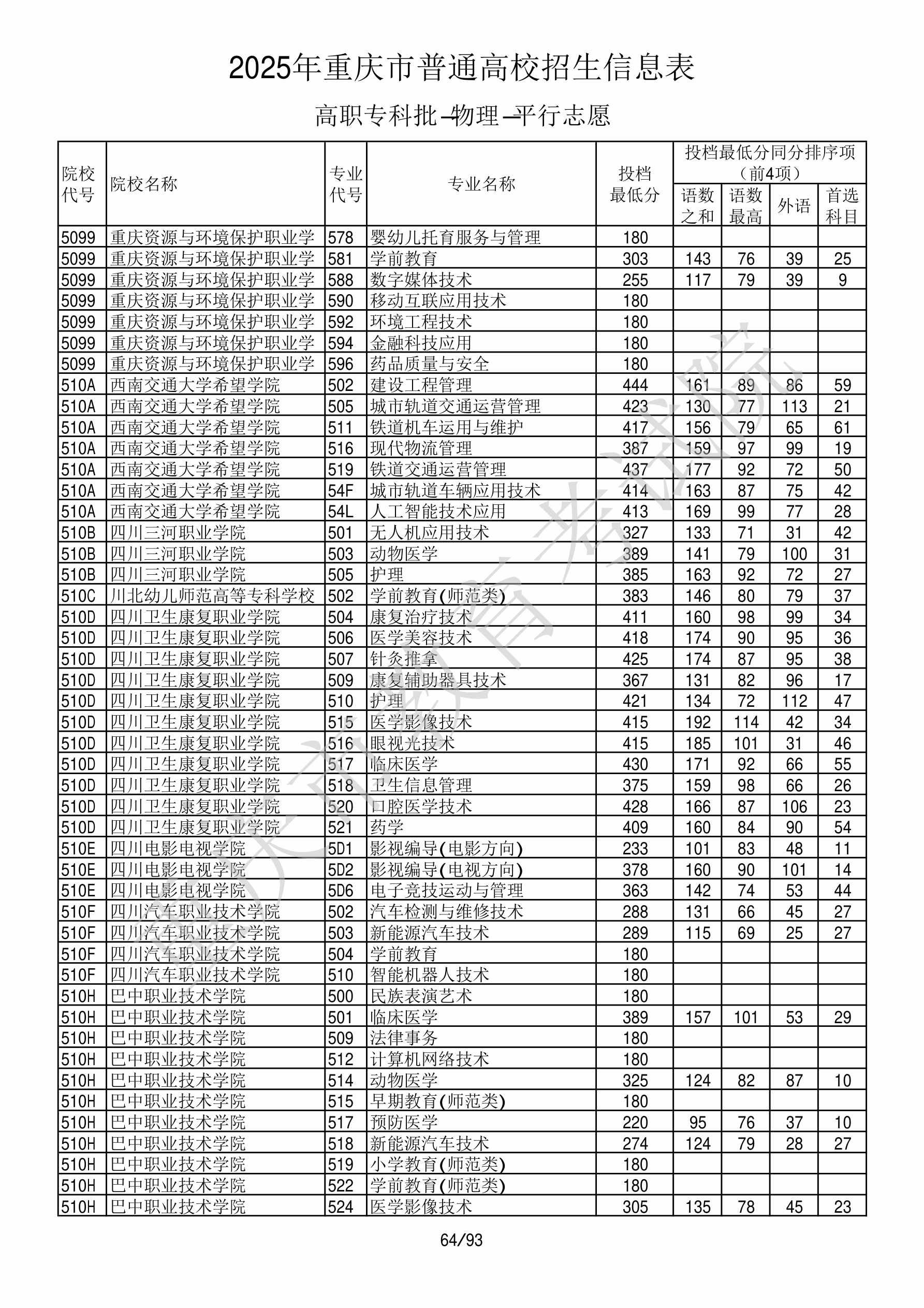 2025年重庆高考普通类高职(专科)批 川北幼儿师范高等专科学校 的 学前教育 专业录取分数溯源信息