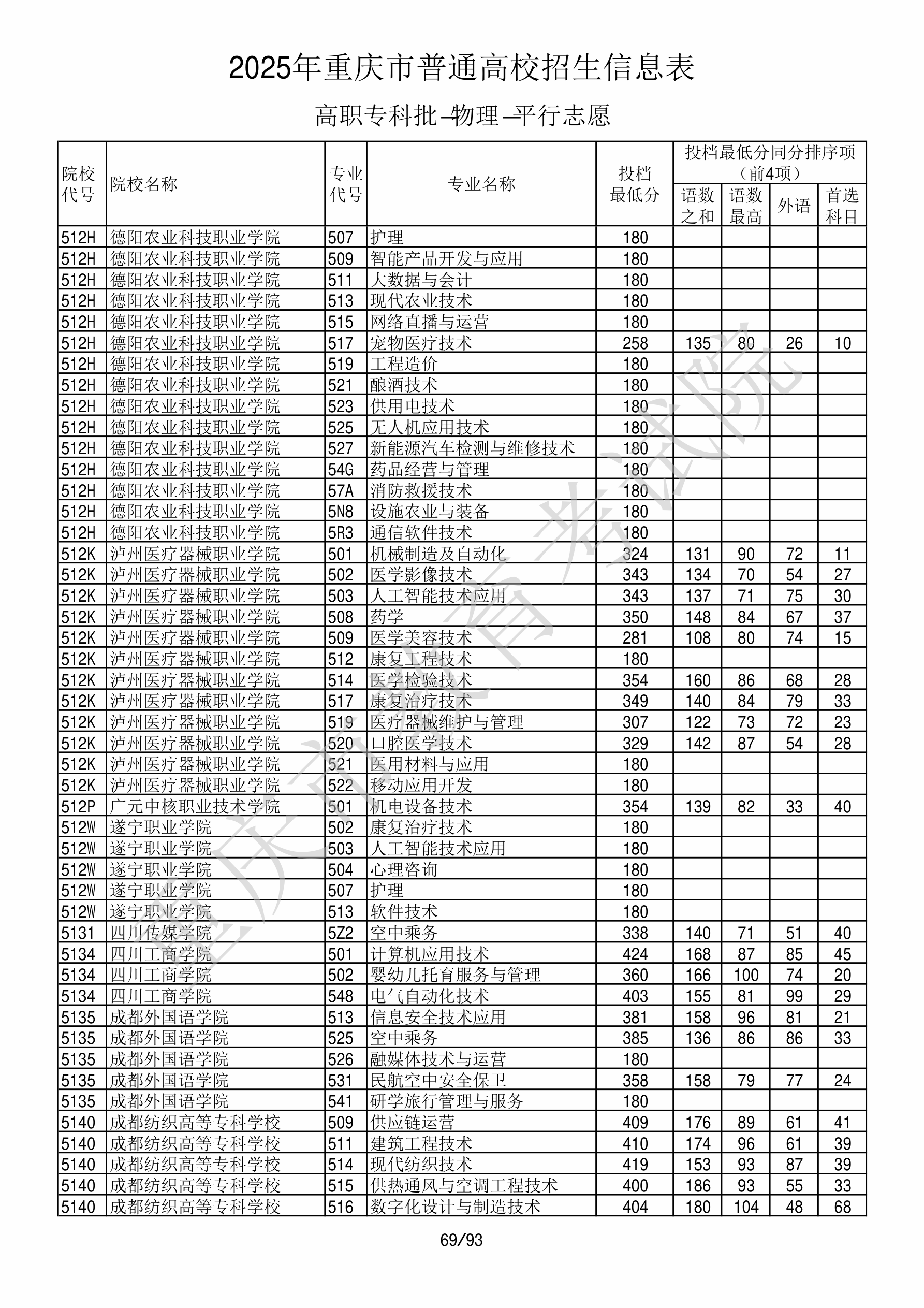 2025年重庆高考普通类高职(专科)批 成都纺织高等专科学校 的 供应链运营 专业录取分数溯源信息