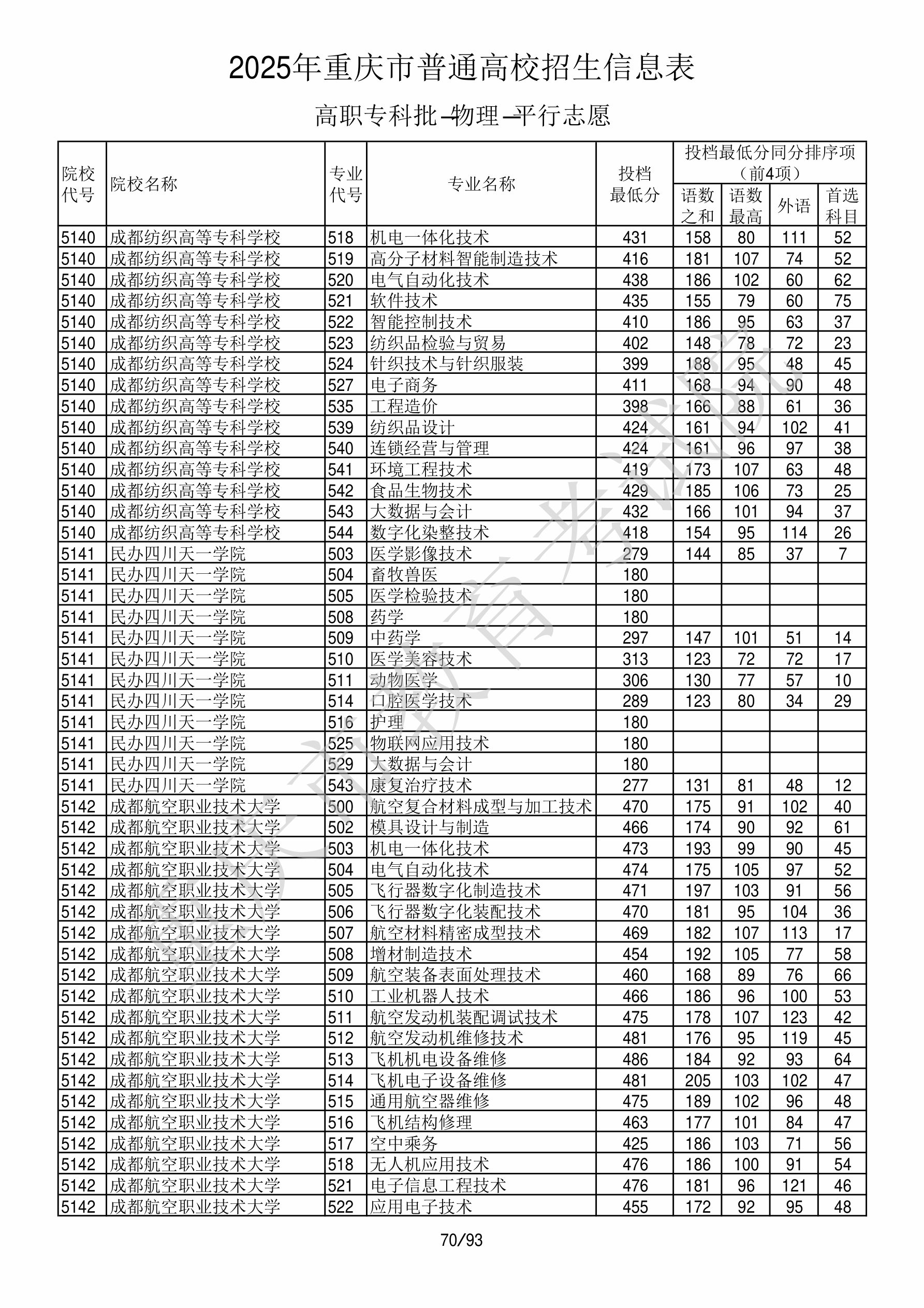 2025年重庆高考普通类高职(专科)批 成都航空职业技术大学 的 电子信息工程技术 专业录取分数溯源信息