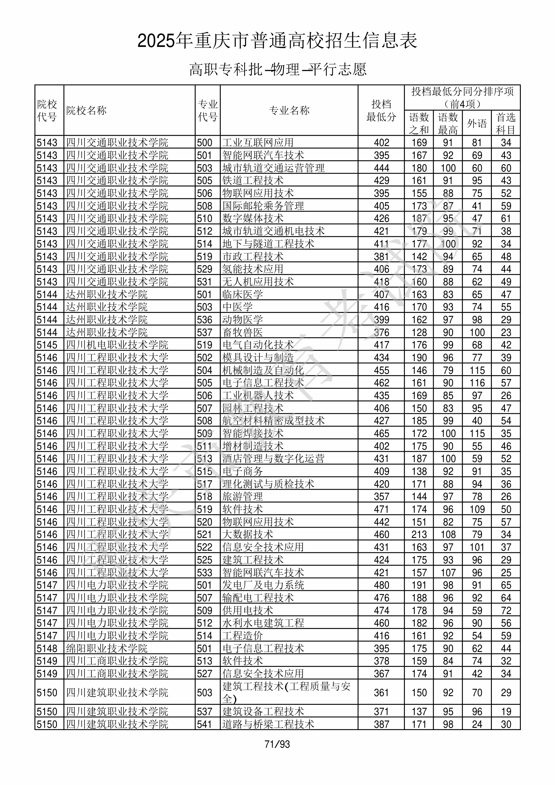2025年重庆高考普通类高职(专科)批 四川电力职业技术学院 的 水利水电建筑工程 专业录取分数溯源信息