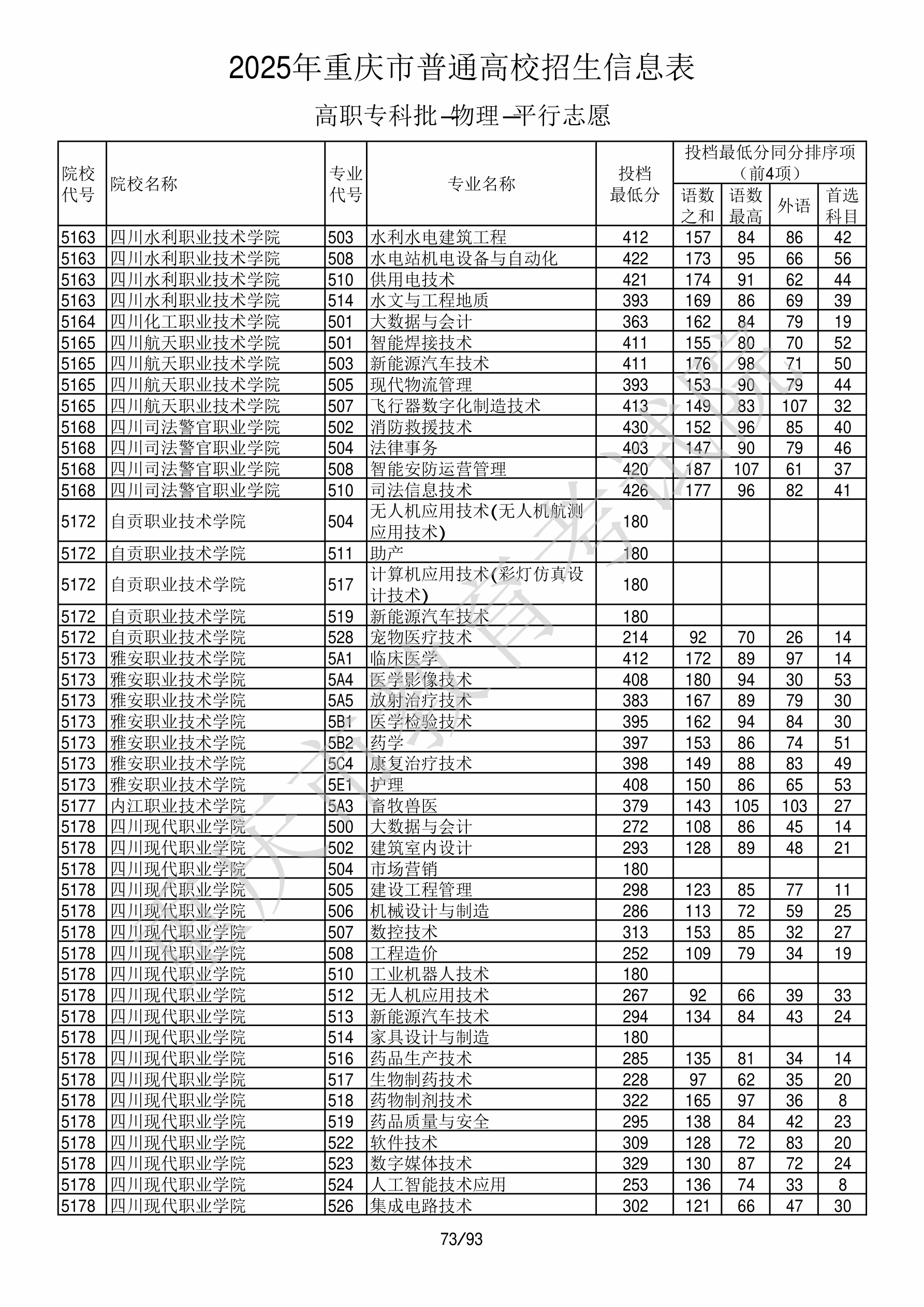 2025年重庆高考普通类高职(专科)批 四川现代职业学院 的 机械设计与制造 专业录取分数溯源信息