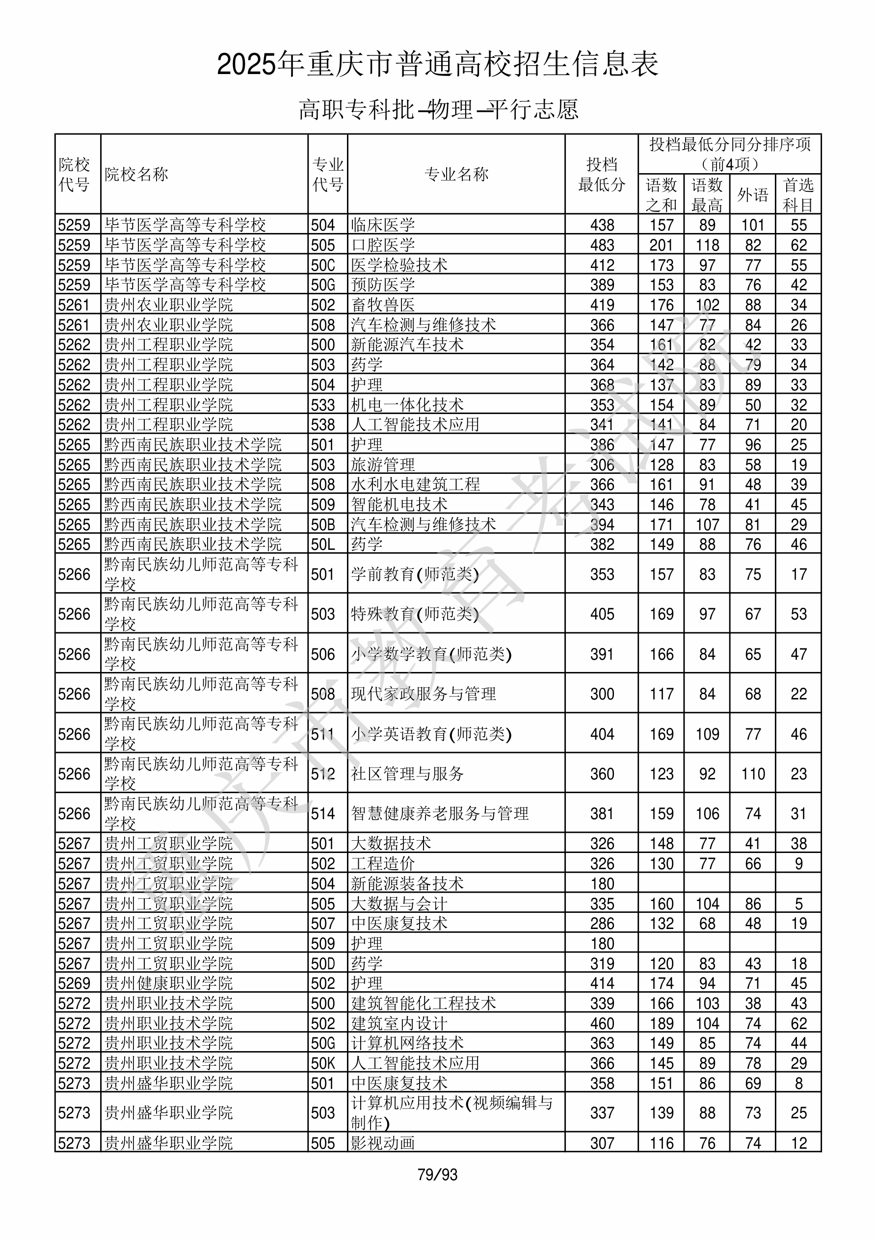 2025年重庆高考普通类高职(专科)批 贵州工程职业学院 的 人工智能技术应用 专业录取分数溯源信息