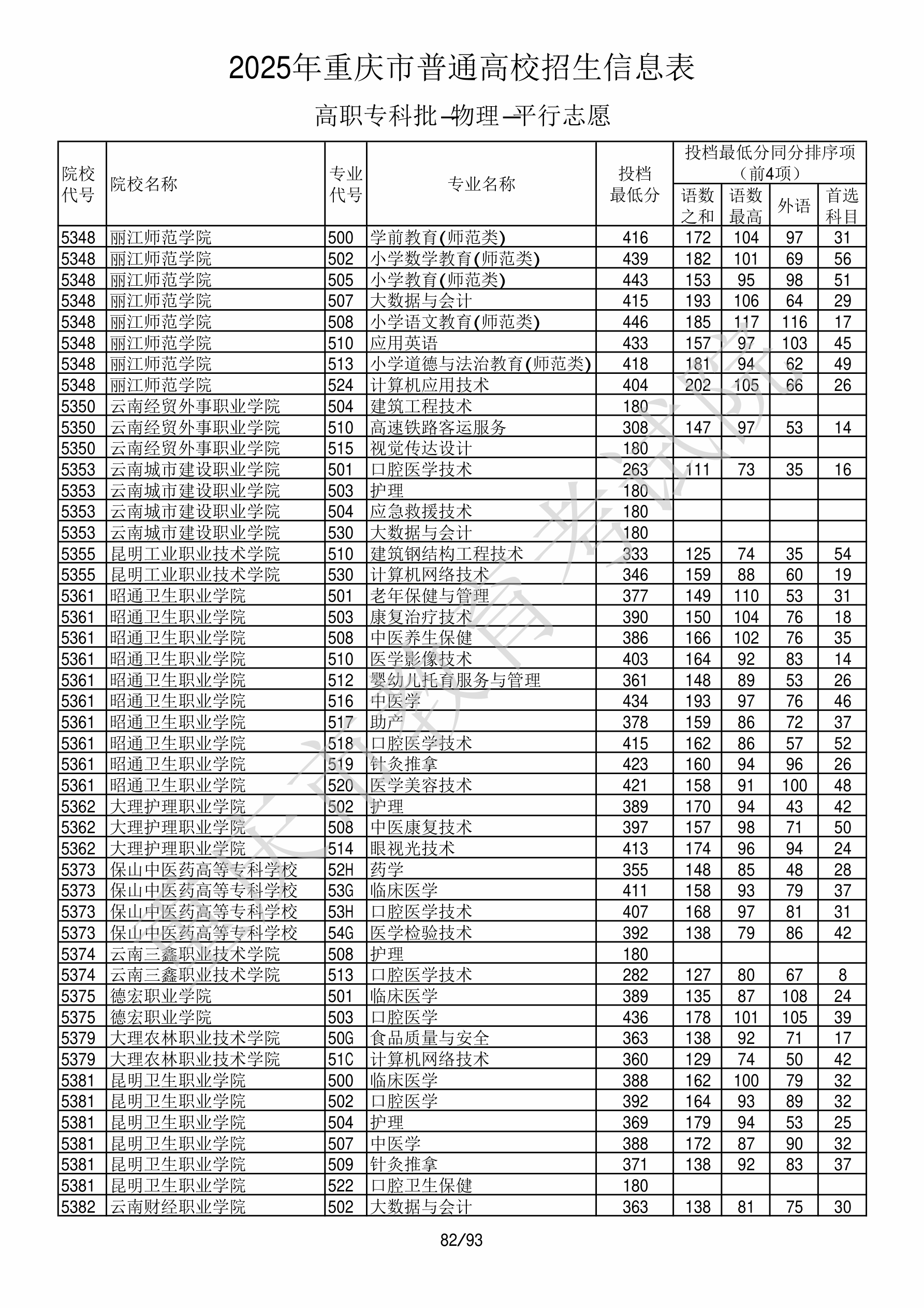 2025年重庆高考普通类高职(专科)批 丽江师范学院 的 学前教育 专业录取分数溯源信息