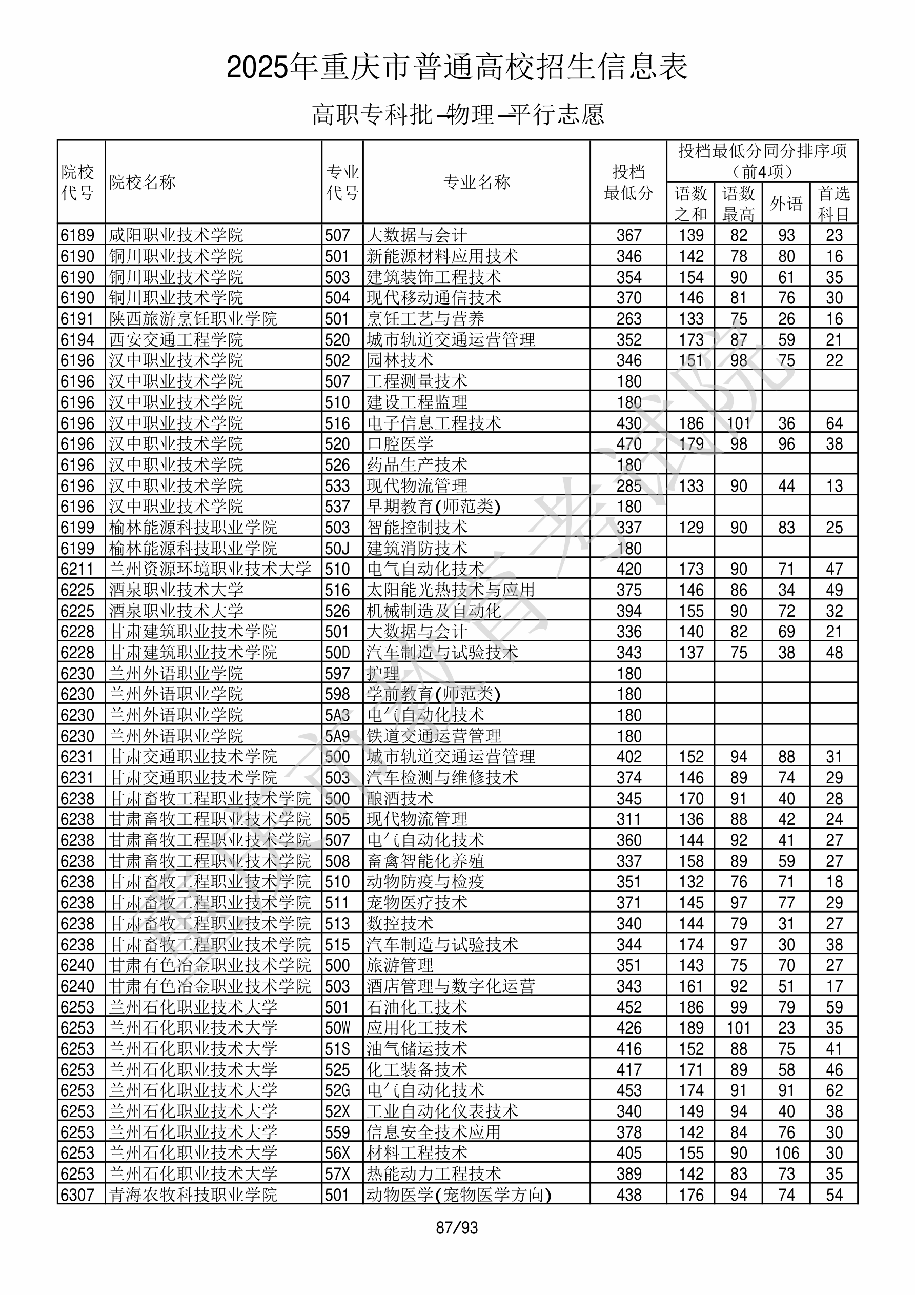 2025年重庆高考普通类高职(专科)批 兰州石化职业技术大学 的 材料工程技术 专业录取分数溯源信息