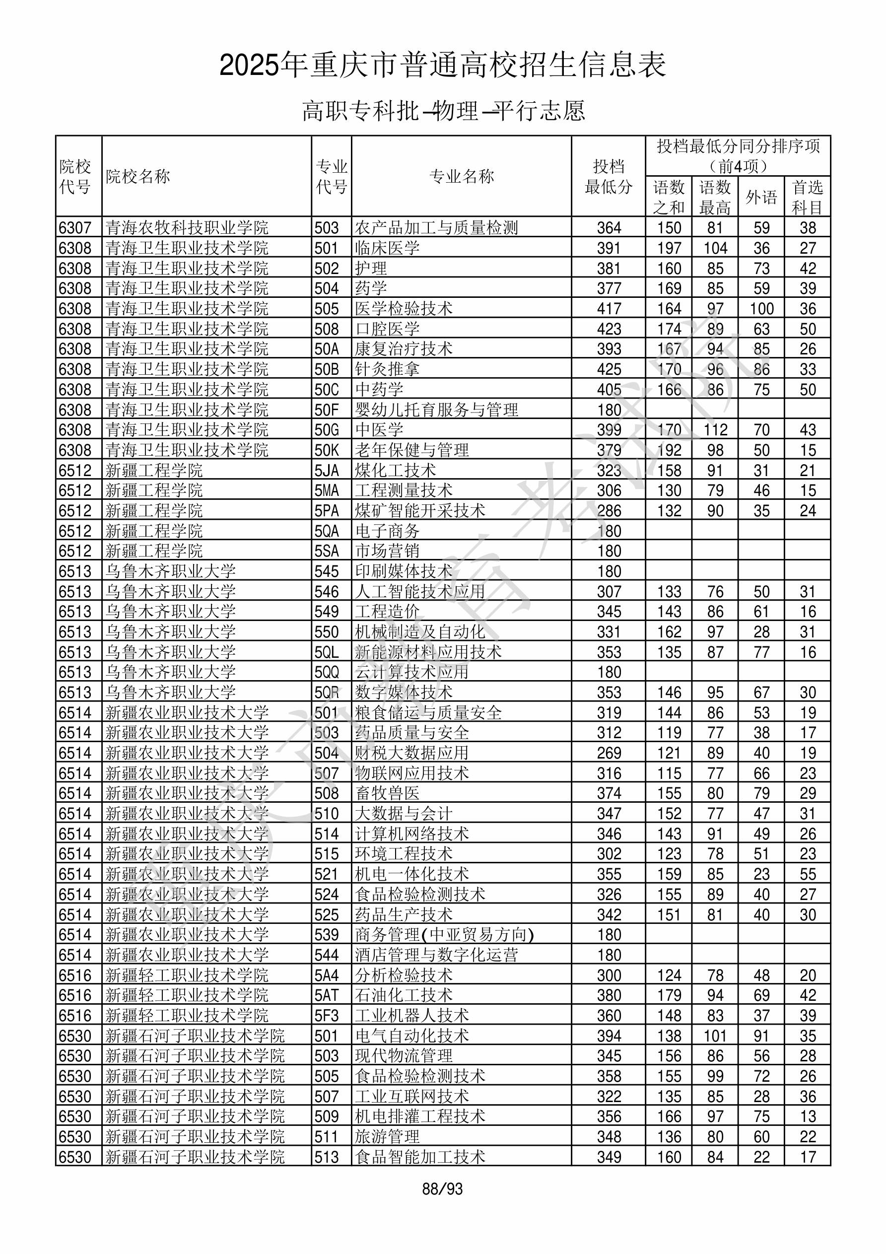 2025年重庆高考普通类高职(专科)批 乌鲁木齐职业大学 的 数字媒体技术 专业录取分数溯源信息