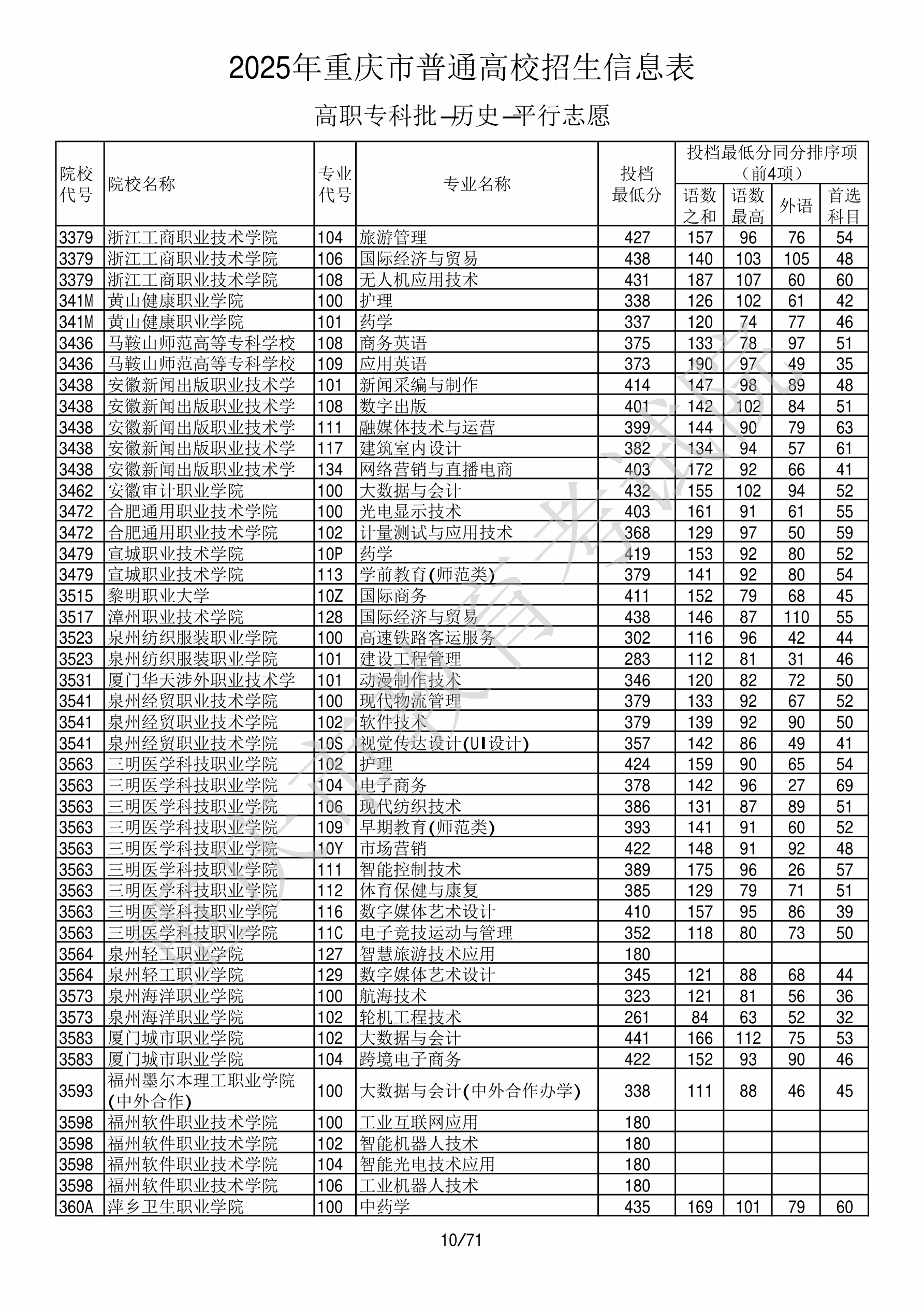 | 院校代码 | 院校名称 | 专业代码 | 专业名称 | 最低分数 | 最低位次 | 专业层次 | 限考科目 | 投档 |